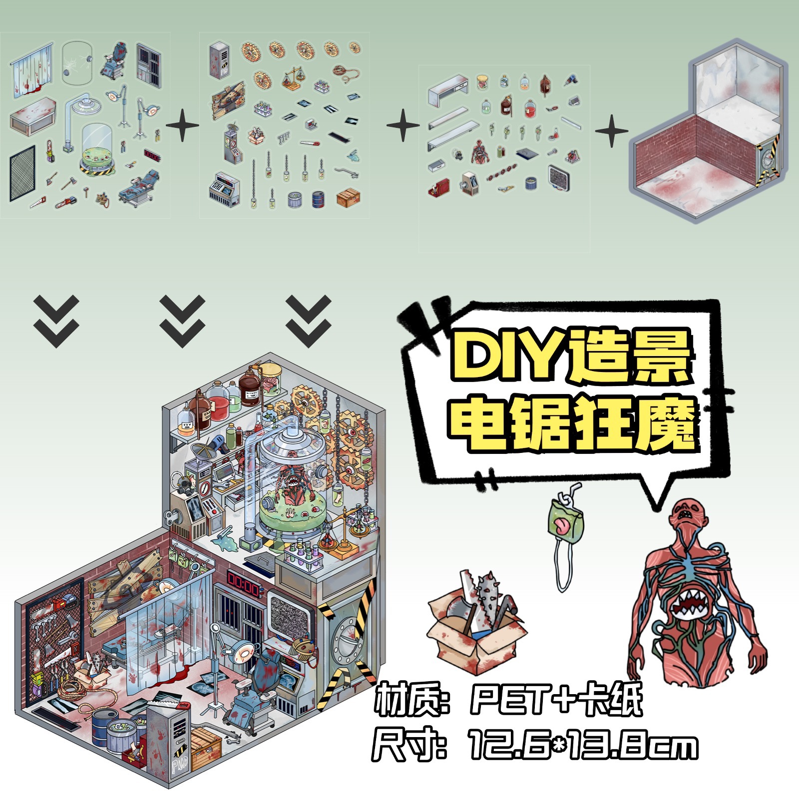 ZJXL055 电锯狂魔实验室造景-3pcs