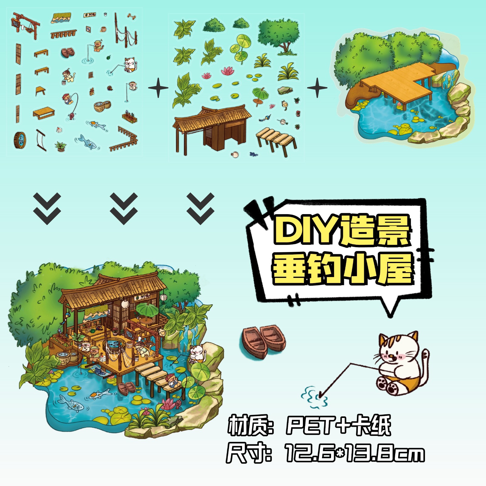 • ZJXL036 낚시 오두막(페트 스티커 2개 + 장면 카드보드 1개 포함)