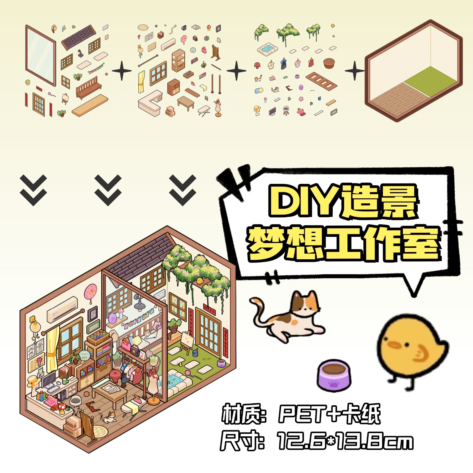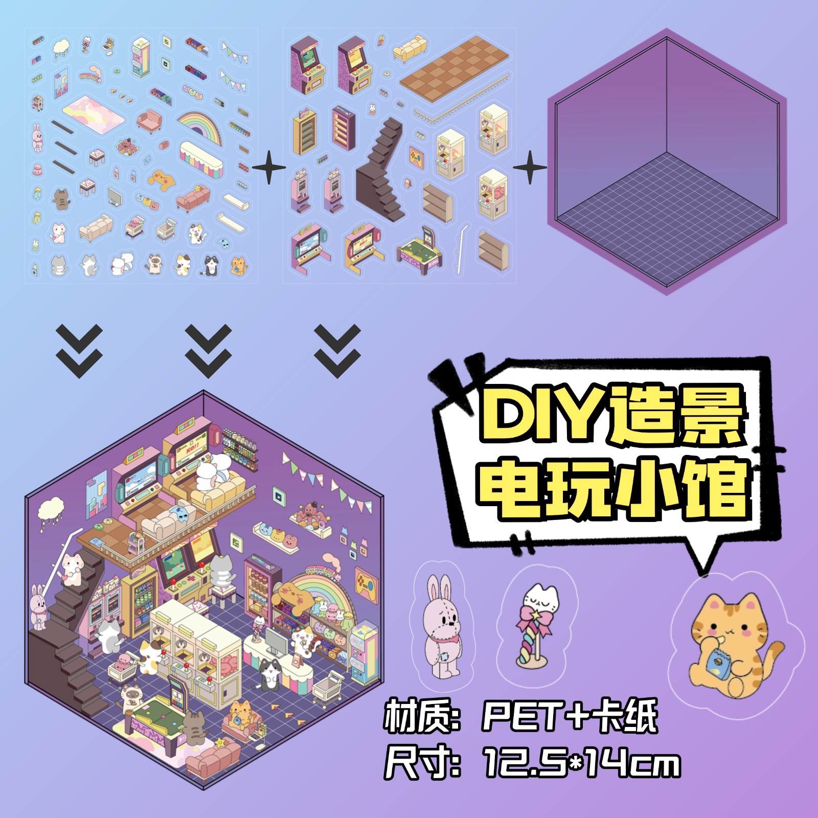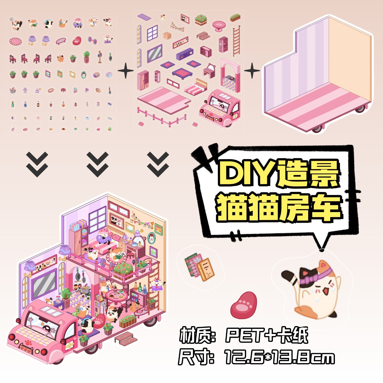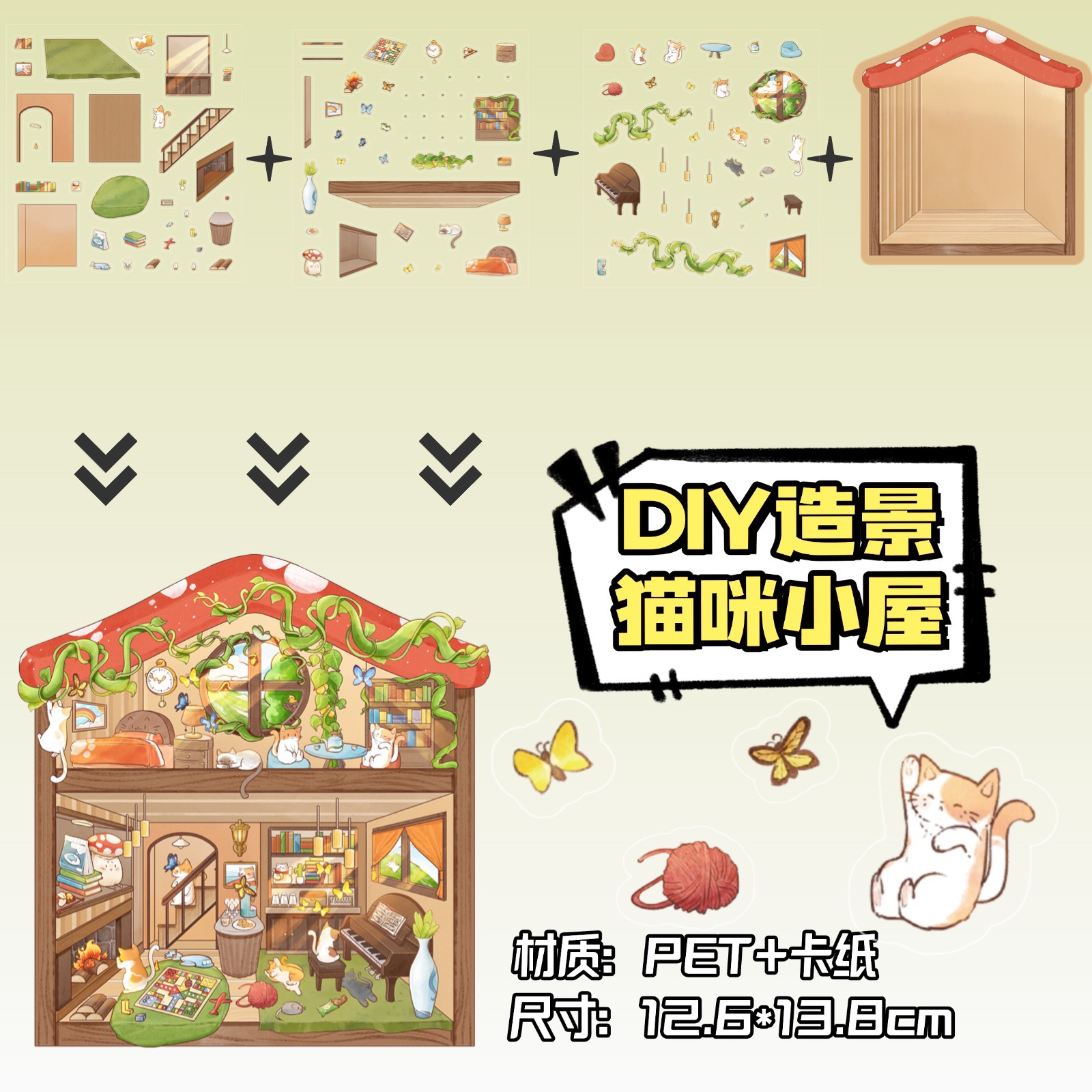 • ZJXL037 고양이집 (PET 스티커 3장 + 장면 카드 1장 포함)