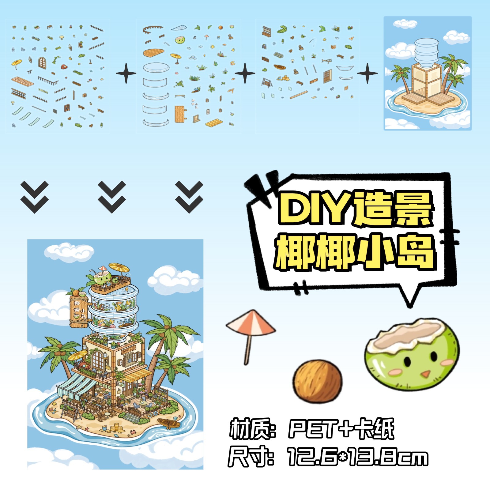 • ZJXL095 코코넛 아일랜드 (PET 스티커 3장 + 장면 카드 1장 포함)