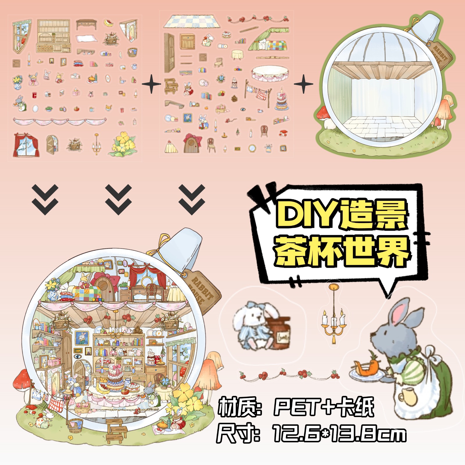 • ZJXL017 티컵 월드(PET 스티커 2개 + 장면 카드보드 1개 포함)
