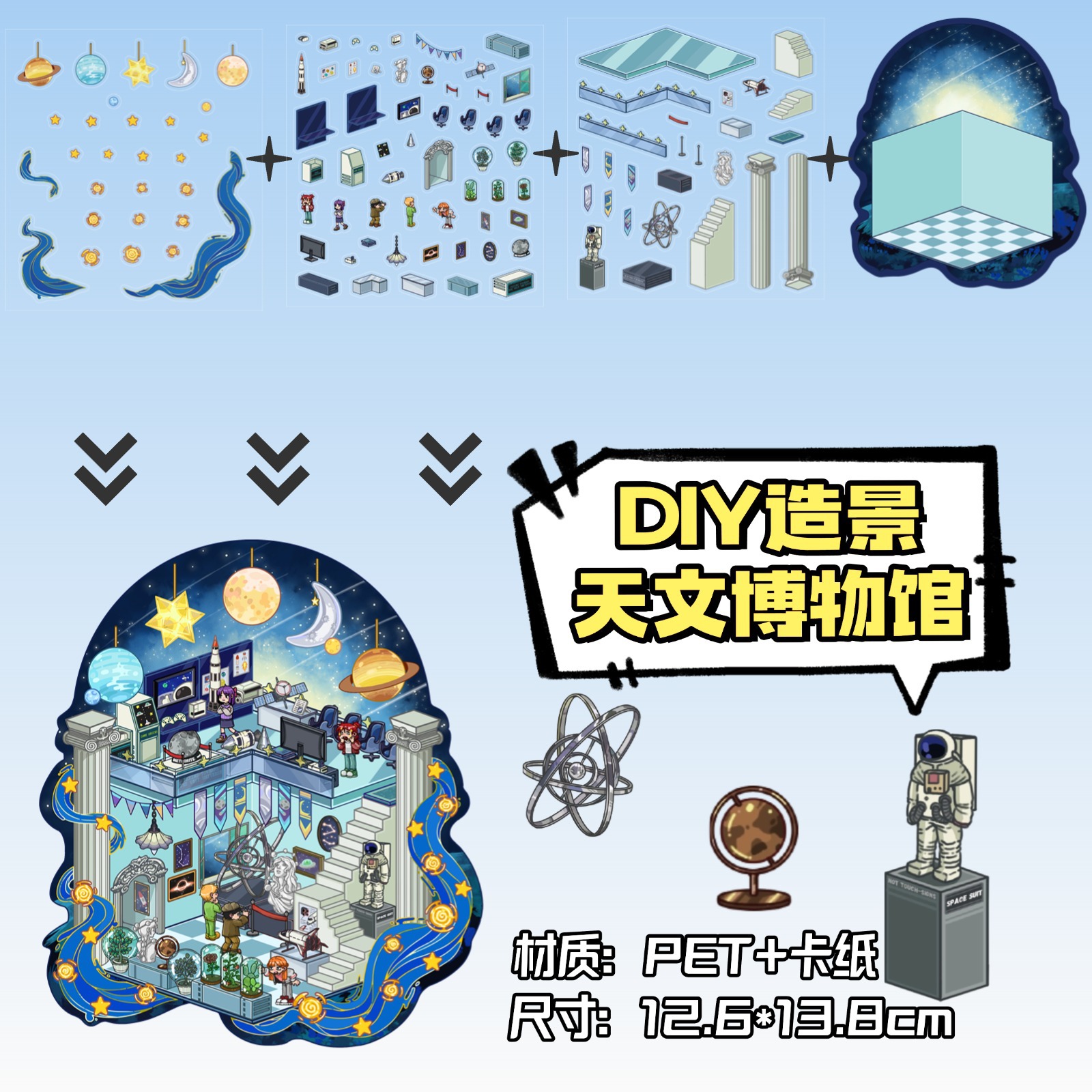 • ZJXL035 천문박물관(PET 스티커 3개 + 장면 카드보드 1개 포함)
