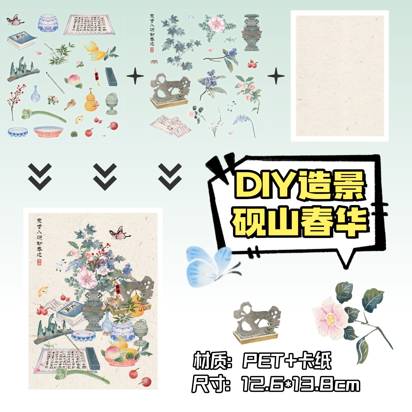 • ZJXL048 Yanshan Chunhua (PET 스티커 2개 + 장면 카드 1개 포함)