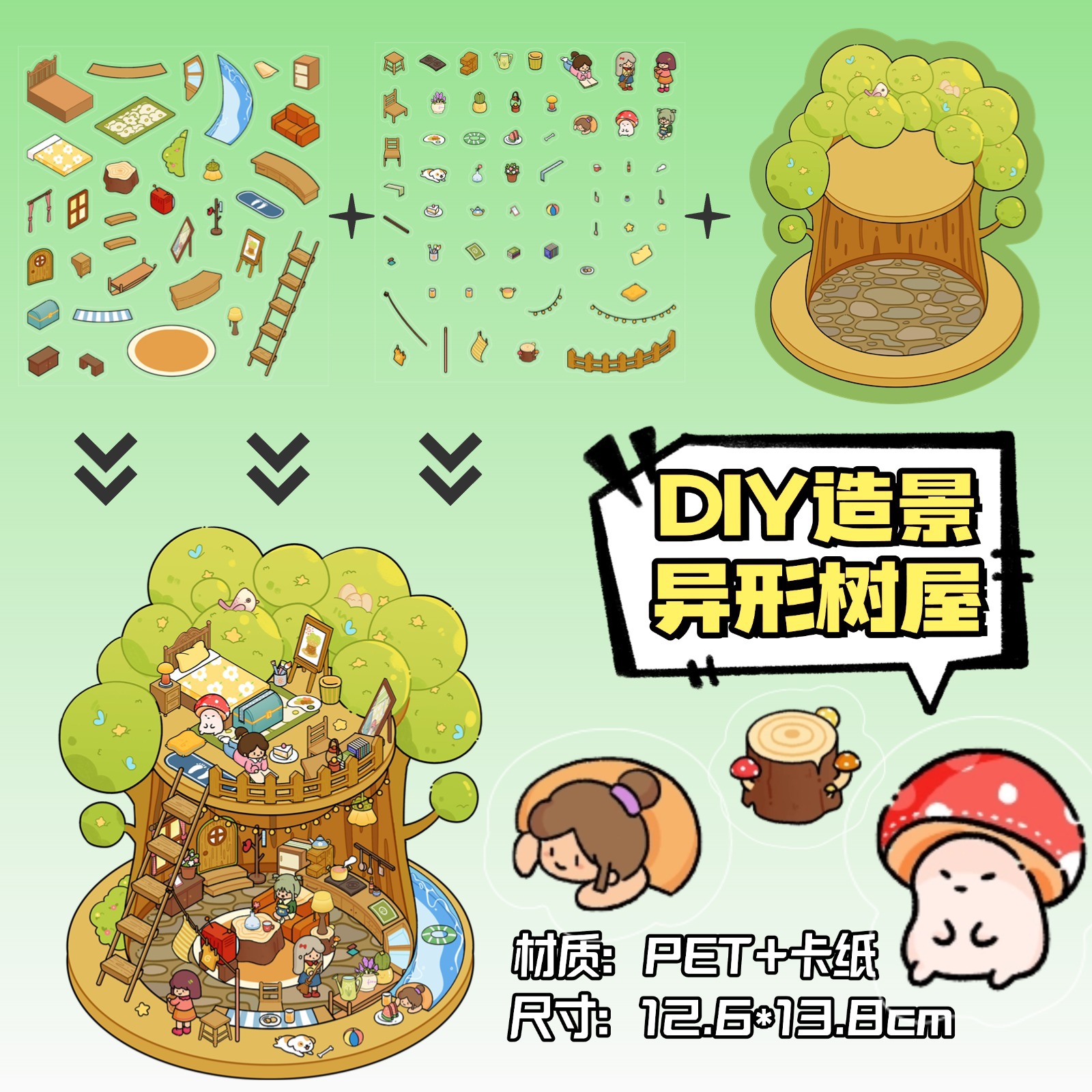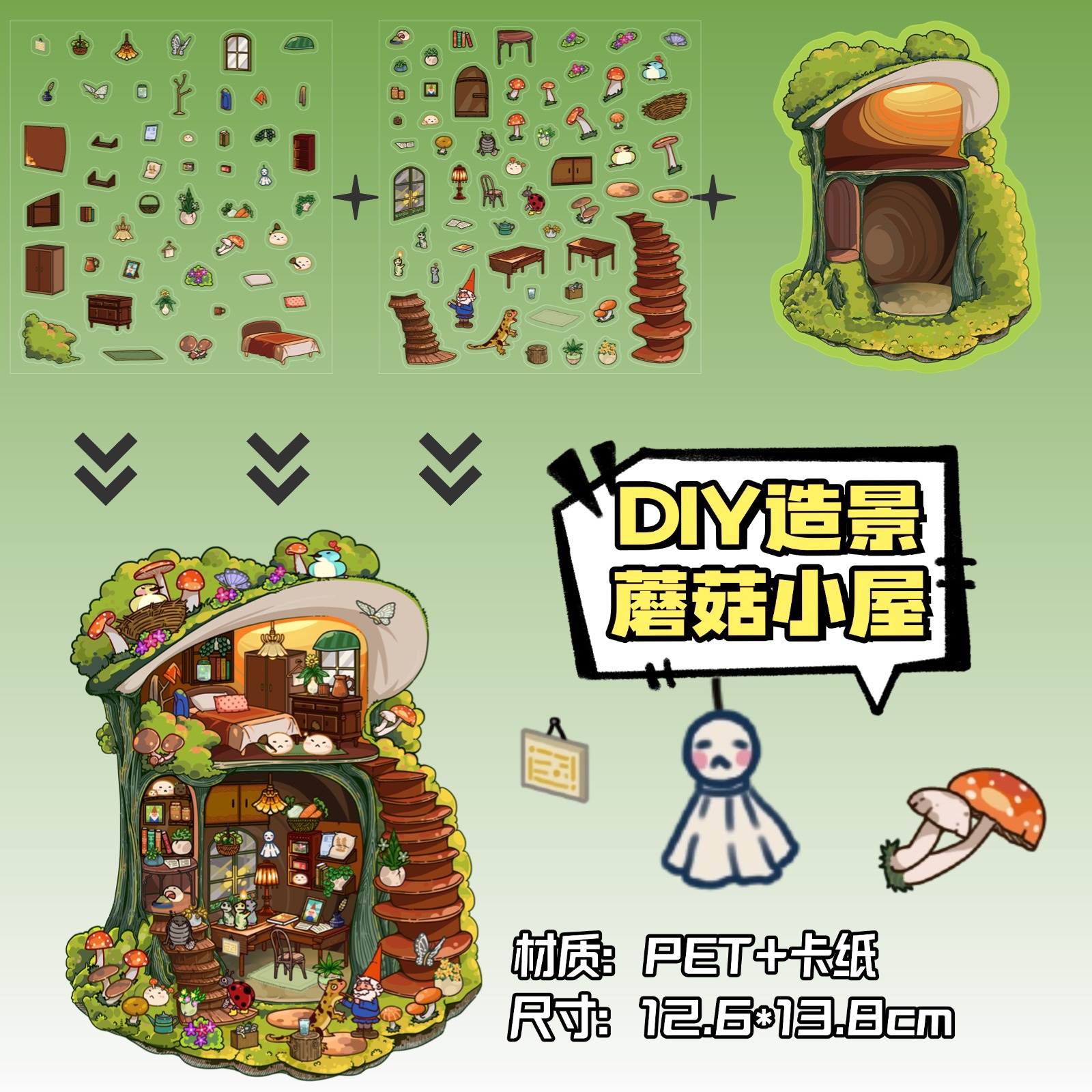 • ZJXL033 버섯집 (PET 스티커 2개 + 장면 카드보드 1개 포함)
