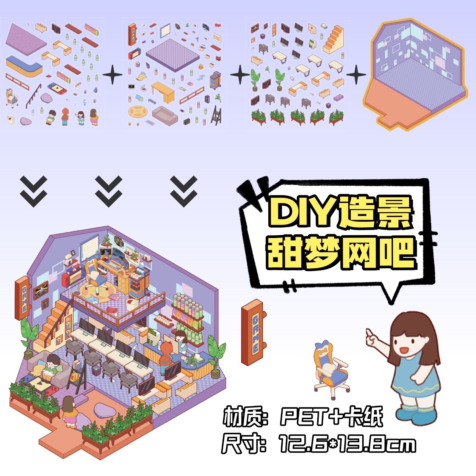 • ZJXL065 스위트 드림 PC방 (PET 스티커 3장 + 배경 카드 1장 포함)