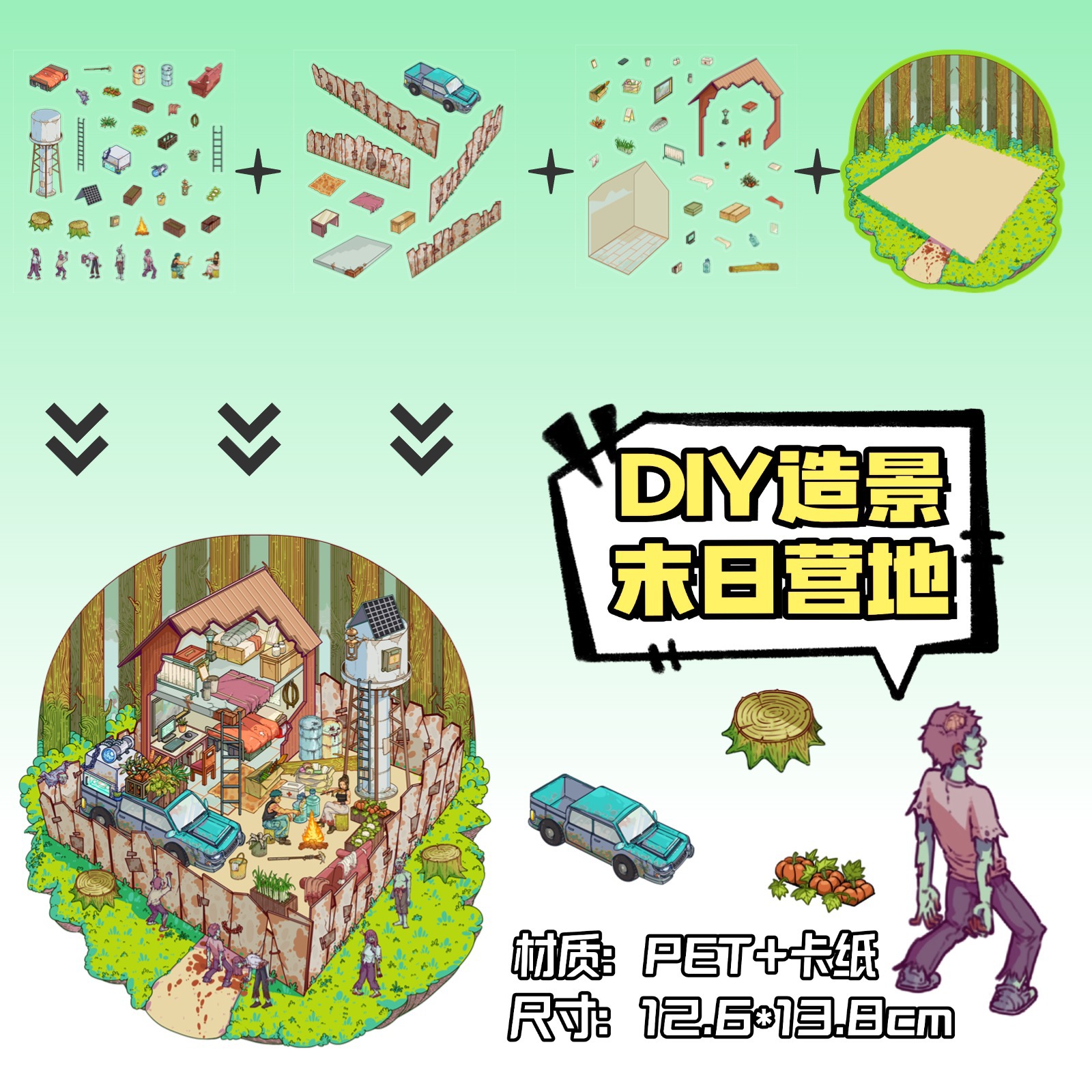 • ZJXL051 종말의 캠프 (PET 스티커 3장 + 배경 카드 1장 포함)