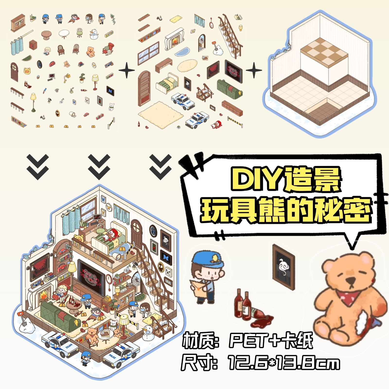 • ZJXL015 테디베어의 비밀 (PET 스티커 2개 + 장면 카드보드 1개 포함)
