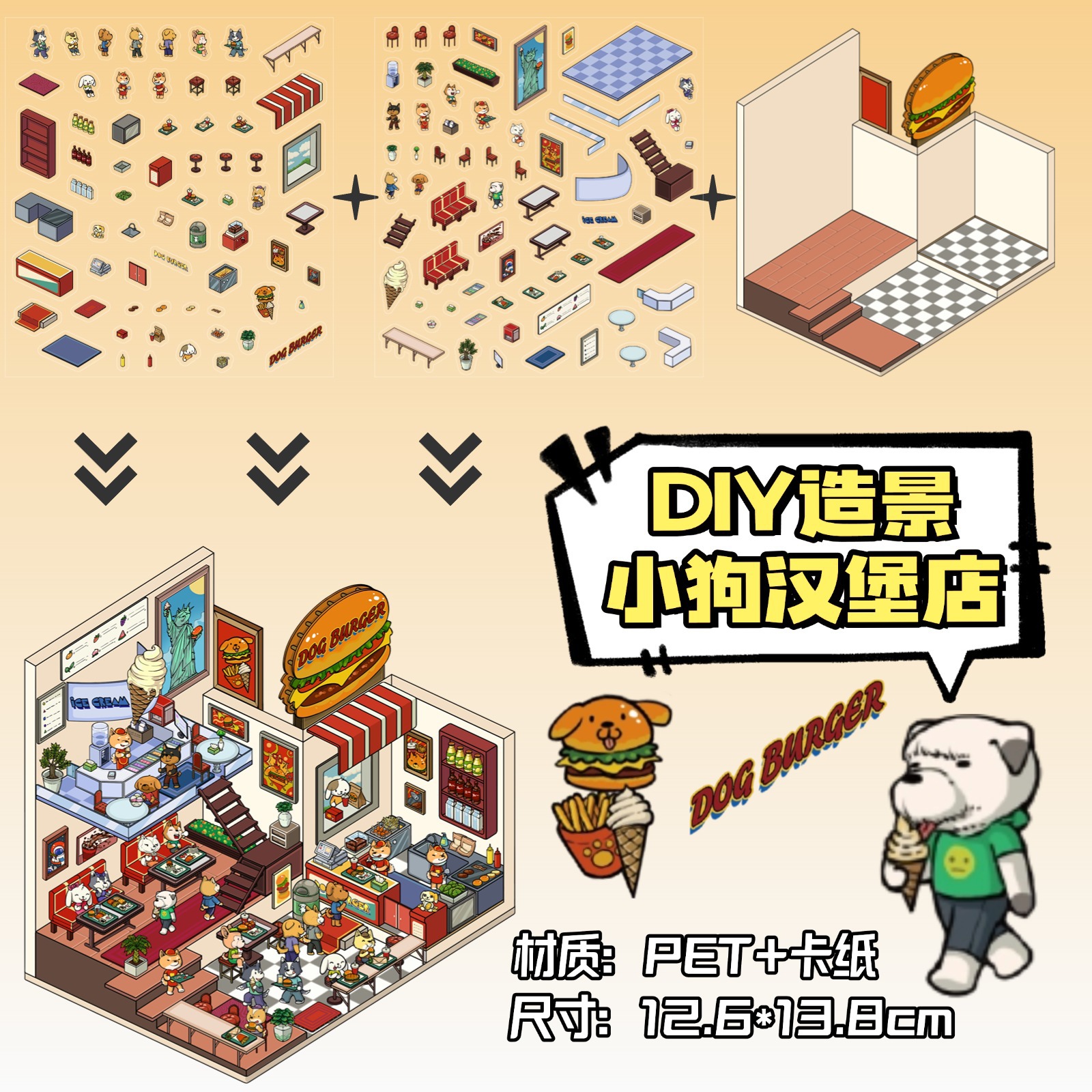 • ZJXL020 강아지 버거샵 (PET 스티커 2개 + 장면 카드보드 1개 포함)