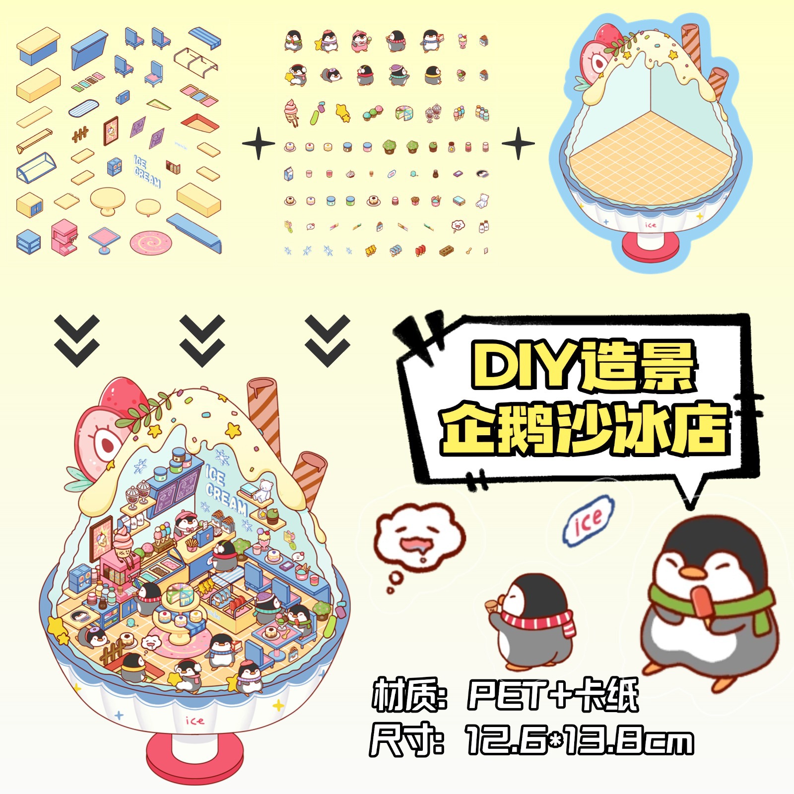 • ZJXL018 펭귄 스무디 샵 (PET 스티커 2개 + 장면 카드보드 1개 포함)