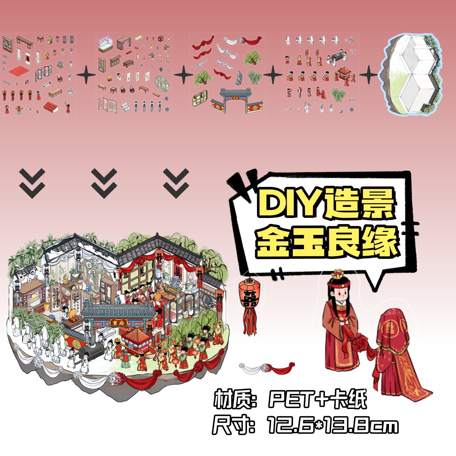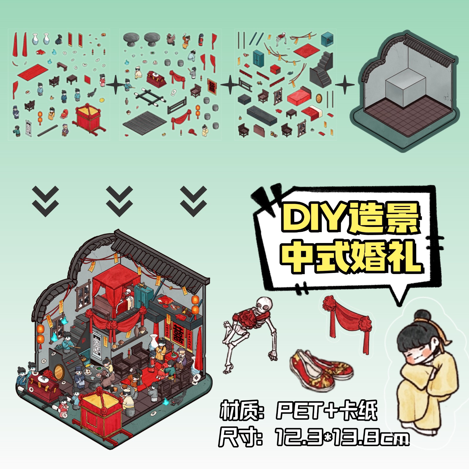 • ZJXL022 중국 결혼식 (PET 스티커 3개 + 장면 카드보드 1개 포함)