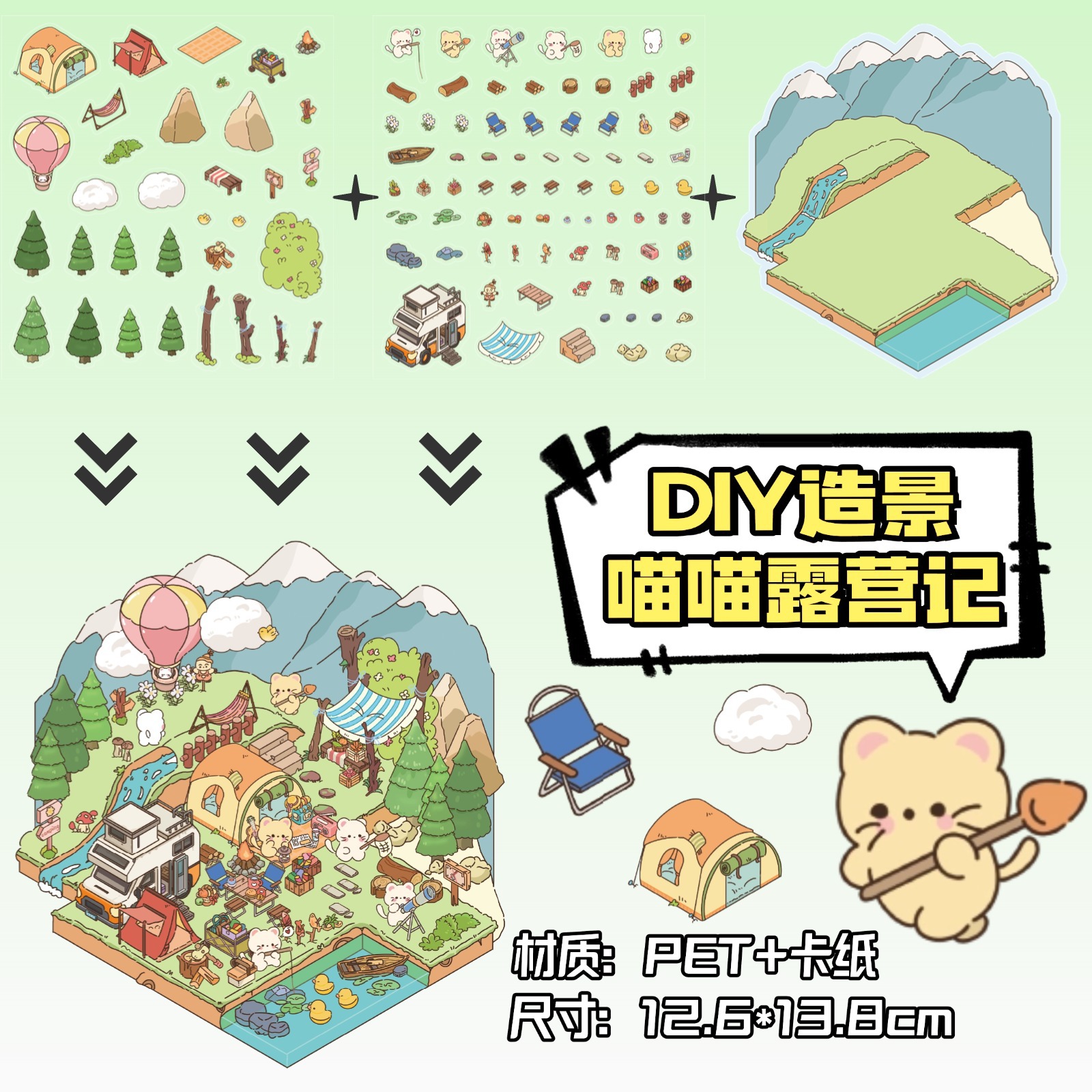 • ZJXL039 고양이 캠핑카 (PET 스티커 2장 + 배경 카드 1장 포함)