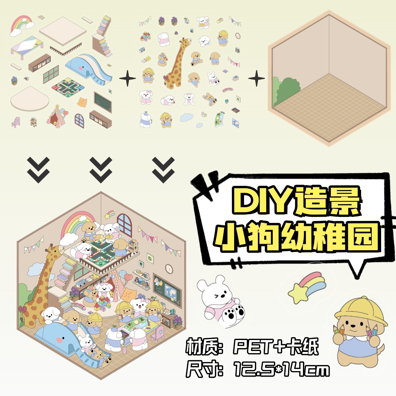 • ZJXL005 강아지 유치원 (PET 스티커 2개 + 장면 카드보드 1개 포함)