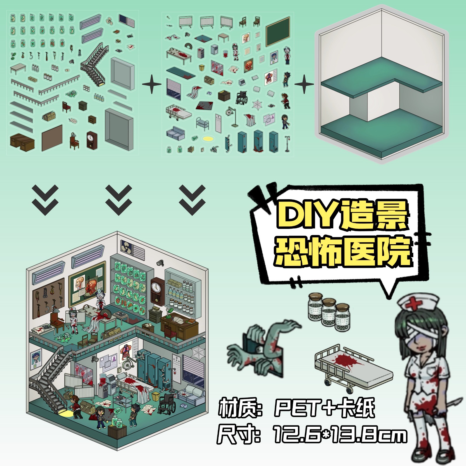 • ZJXL023 호러병원 (PET 스티커 2개 + 장면 카드보드 1개 포함)