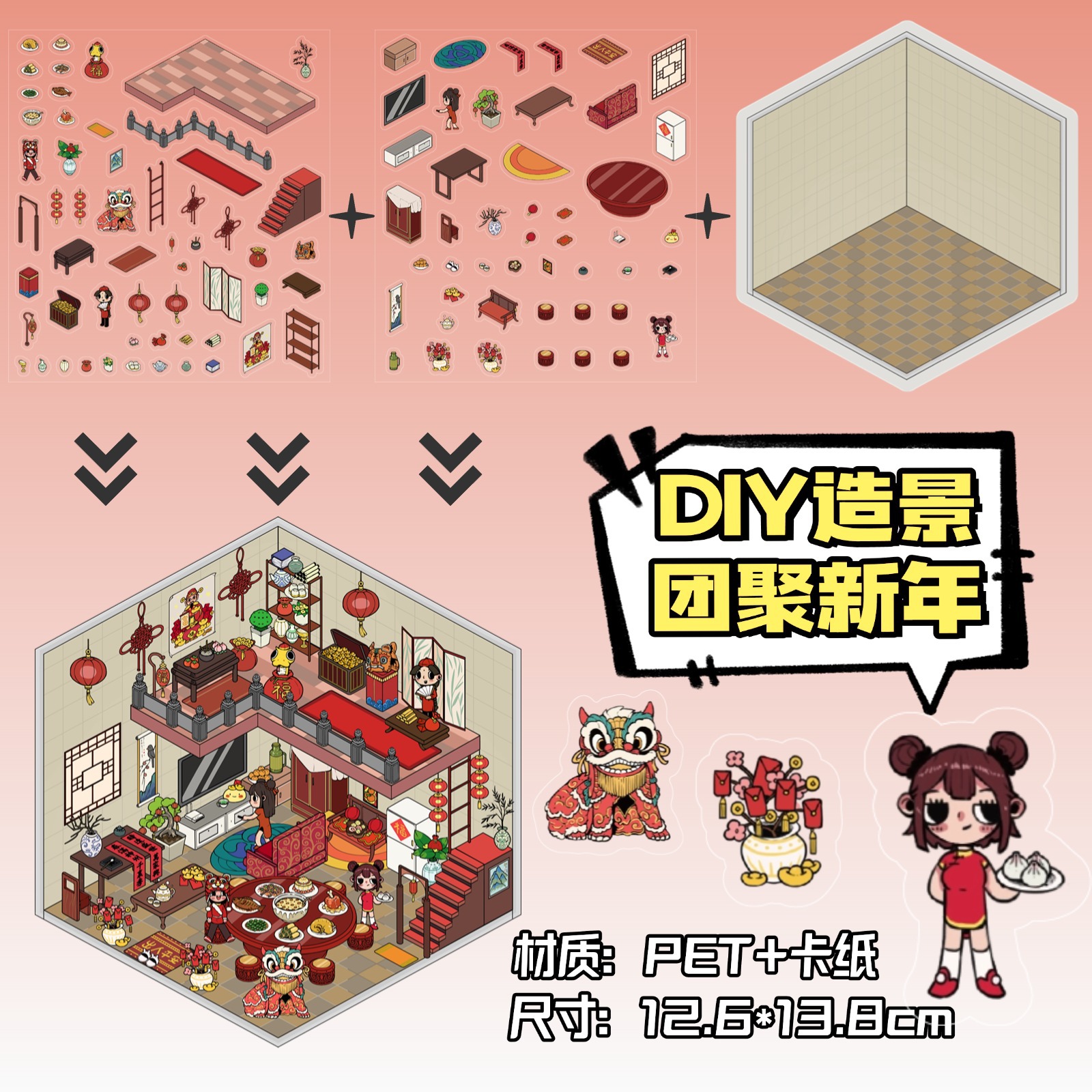 • ZJXL009 동창회 신년 (PET 스티커 2개 + 장면 카드보드 1개 포함)