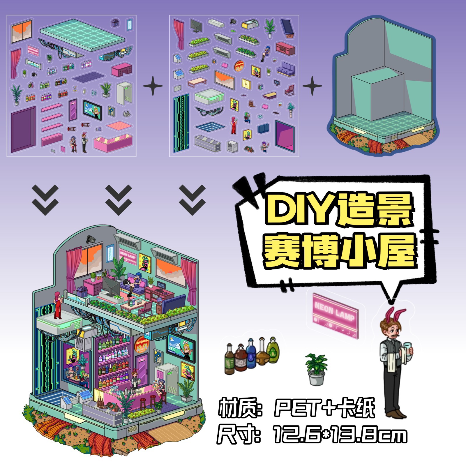 • ZJXL043 사이버 오두막 (PET 스티커 2장 + 배경 카드 1장 포함)