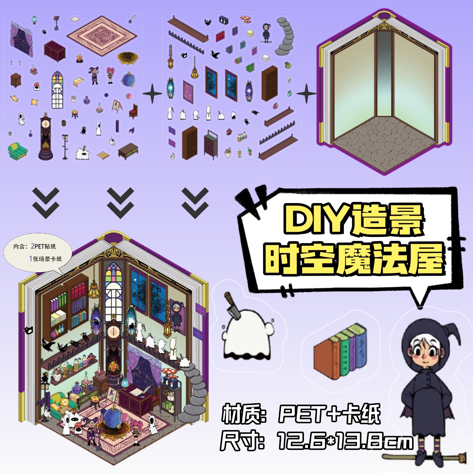 • ZJXL011 시공간 마법의 집 (PET 스티커 2개 + 장면 카드 1개 포함)