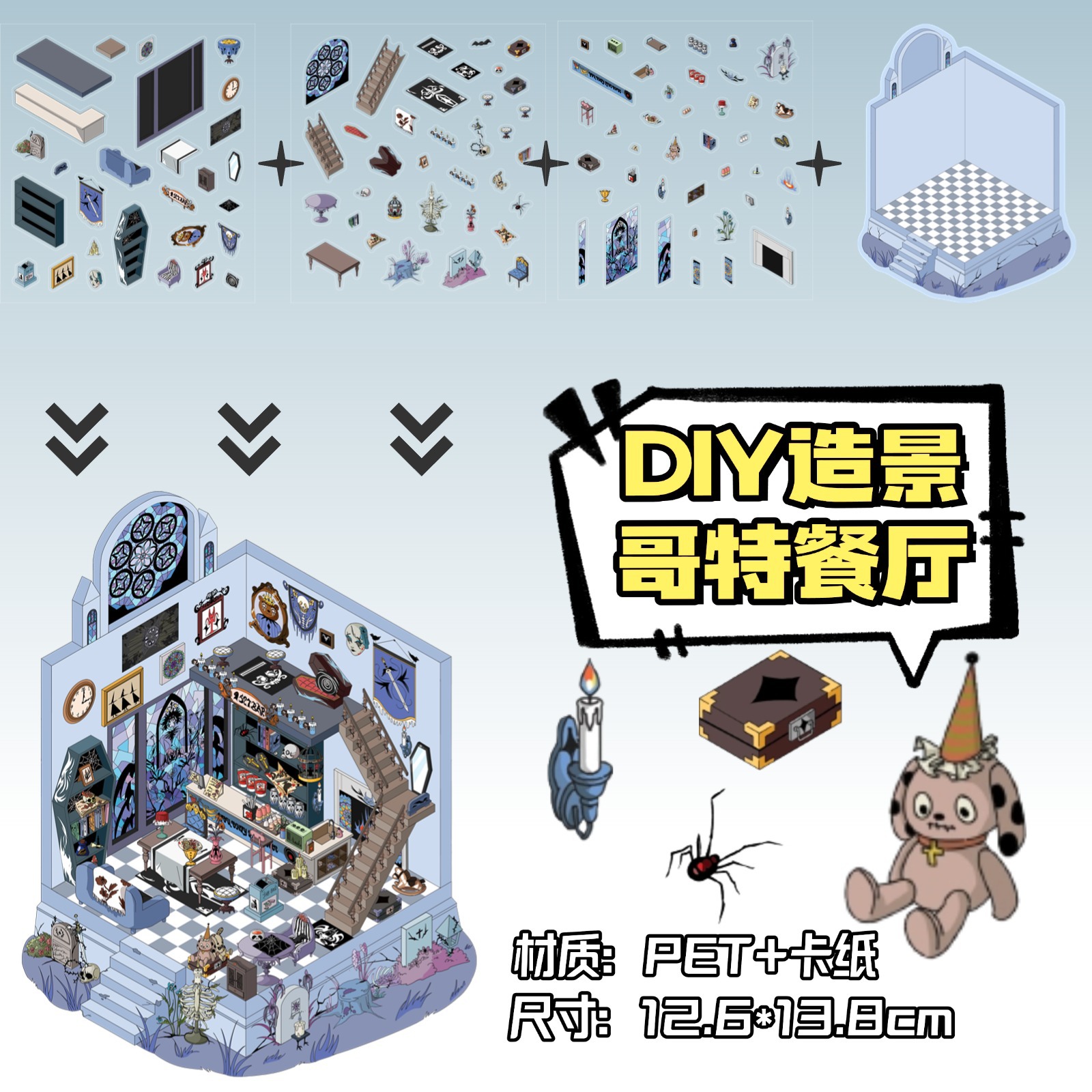 • ZJXL079 고딕 레스토랑 (PET 스티커 3장 + 배경 카드 1장 포함)