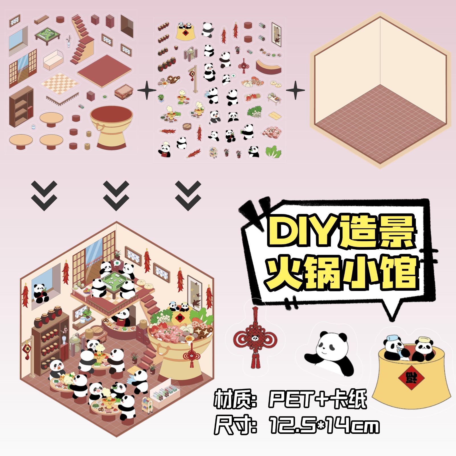 • ZJXL003 냄비 식당(PET 스티커 2개 + 장면 카드 용지 1개 포함)