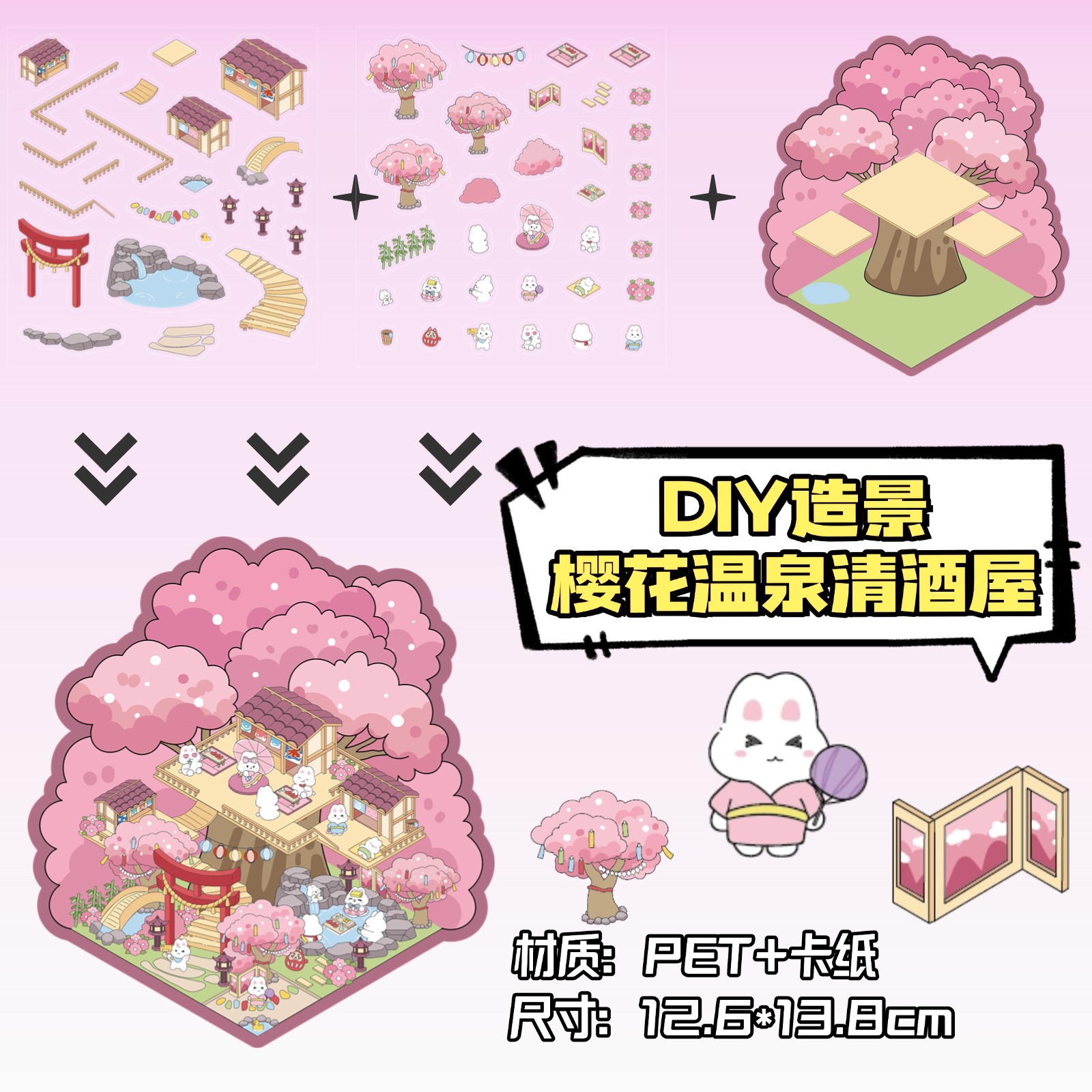 • ZJXL029 사쿠라 사케 하우스 (PET 스티커 2개 + 장면 카드보드 1개 포함)