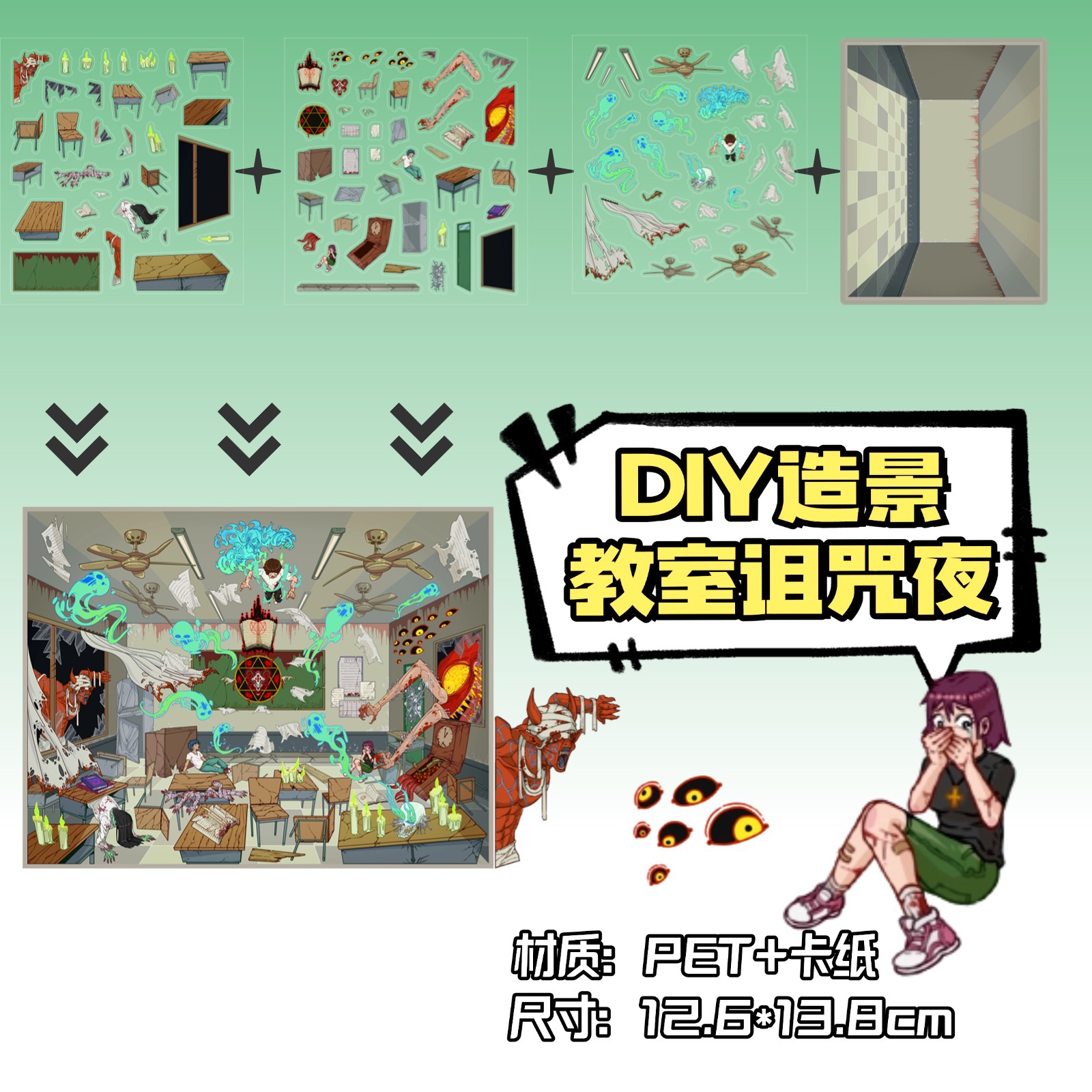 • ZJXL067 교실 저주의 밤 (PET 스티커 3장 + 배경 카드 1장 포함)