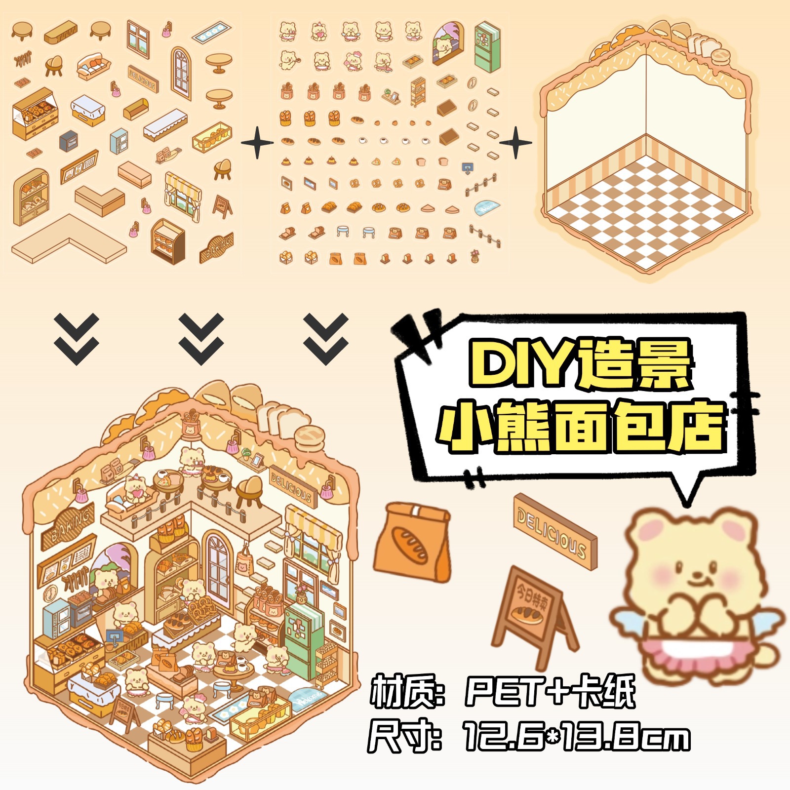 • ZJXL021 베어 베이커리 (PET 스티커 2개 + 장면 카드보드 1개 포함)