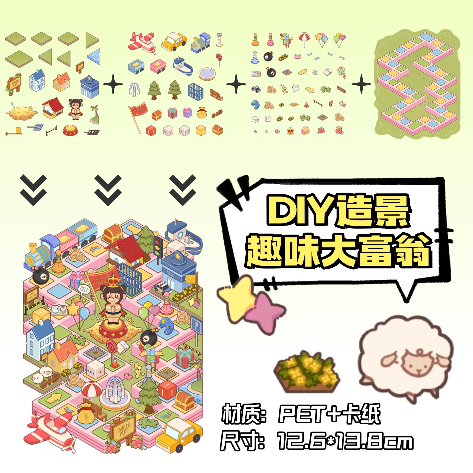 • ZJXL044 재미있는 부루마불 (PET 스티커 3장 + 배경 카드 1장 포함)