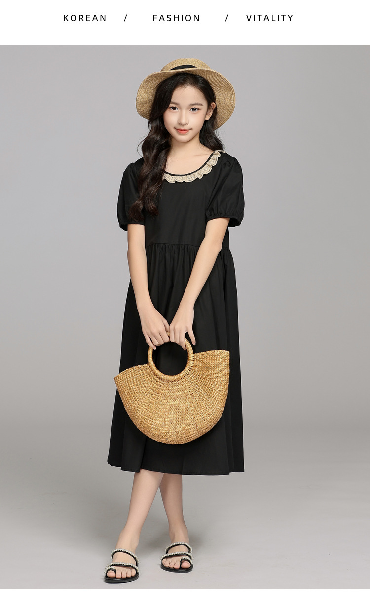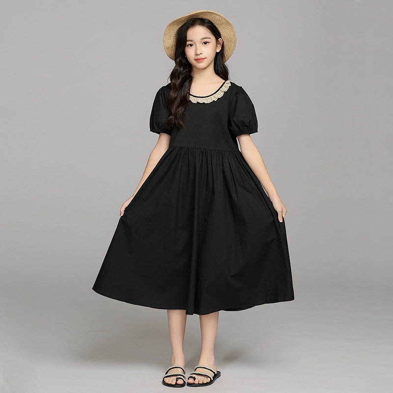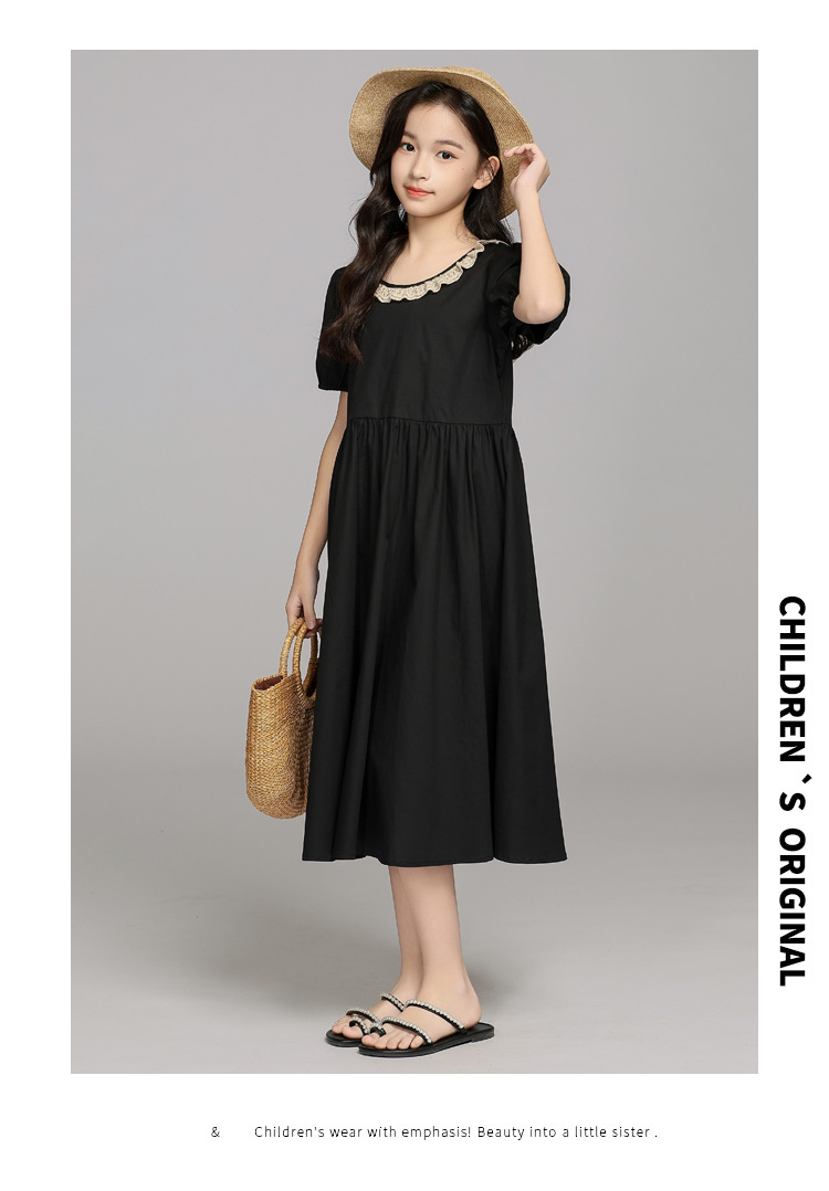 중대형 어린이 소녀 드레스 여름 레이스 스플 라이스 스커트 2025 새로운 어린이 어린 소녀 공주 드레스스토어 가기