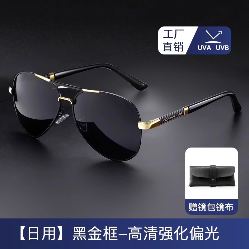 • [편광 눈 보호 및 눈부심 방지 - 주간용] 블랙 프레임 골드 빔 블랙 및 그레이 필름(무료 거울 가방 및 렌즈 천)