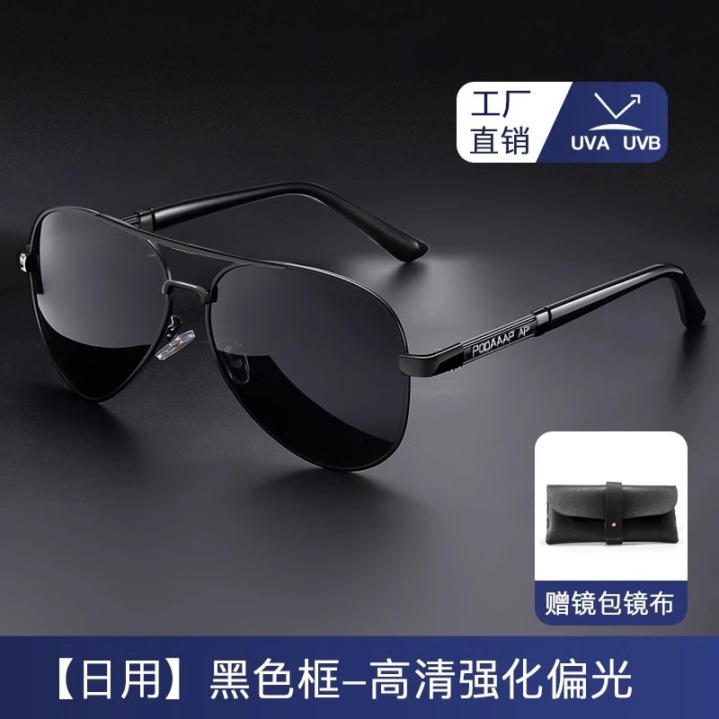 • [편광 눈 보호 및 눈부심 방지 - 주야간 사용] 블랙 프레임 및 블랙 빔 색상 변경 필름(거울 가방 및 렌즈 천 포함)