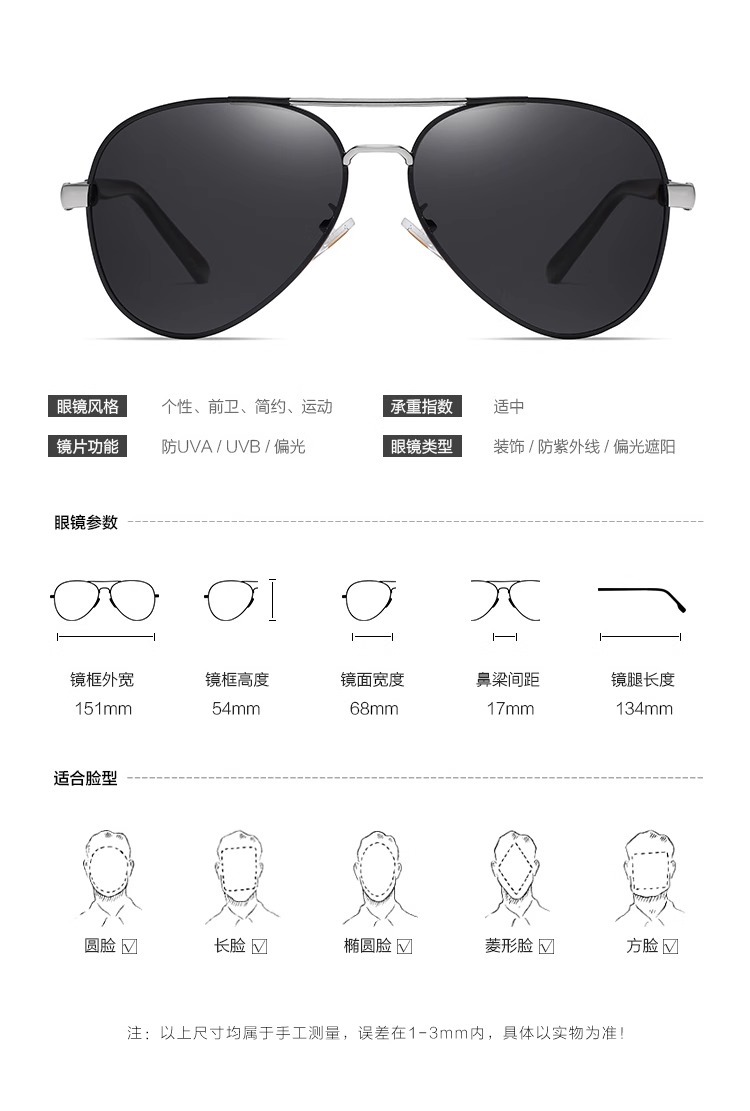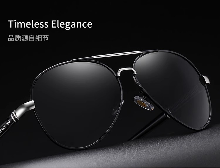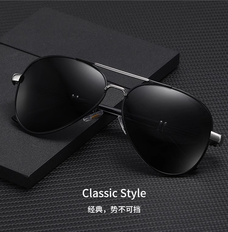 • [편광 눈 보호 및 눈부심 방지 - 주야간 사용] 블랙 프레임 실버 빔 색상 변경 필름(거울 가방 및 렌즈 천 포함)