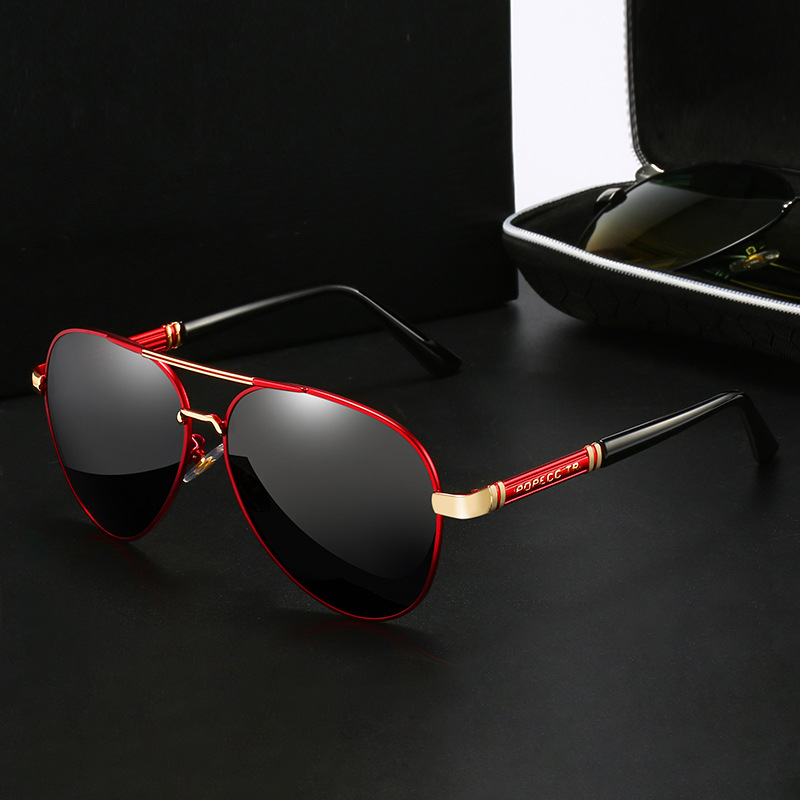 • [편광 눈 보호 및 눈부심 방지 - 주간용] 레드 골드 프레임 블랙 및 그레이 필름(무료 렌즈 가방 및 렌즈 천)
