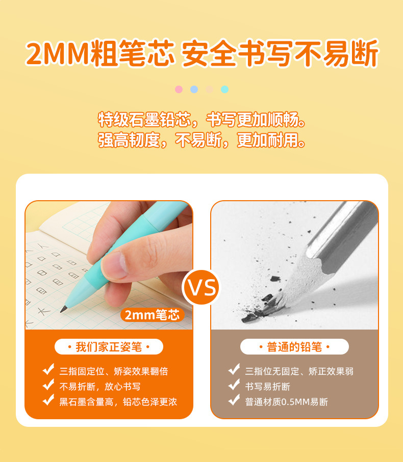 초등학생을 위한 포지티브 연필, 2.0mm 연속 코어 문구, 어린이 서예 연습용 소프트 그립 특수 자동 연필 도매스토어 가기