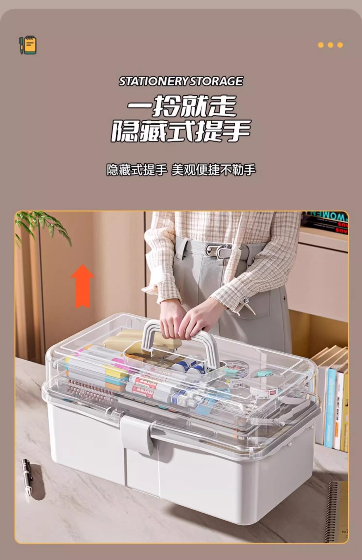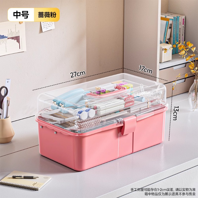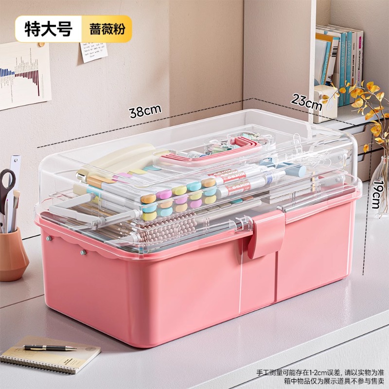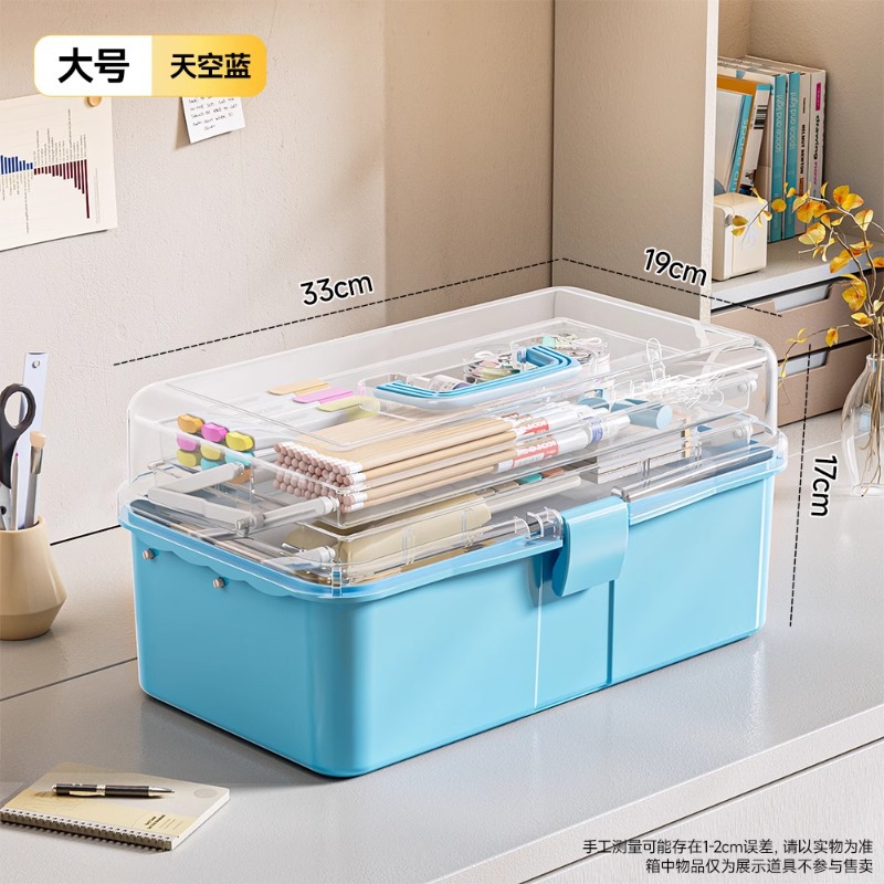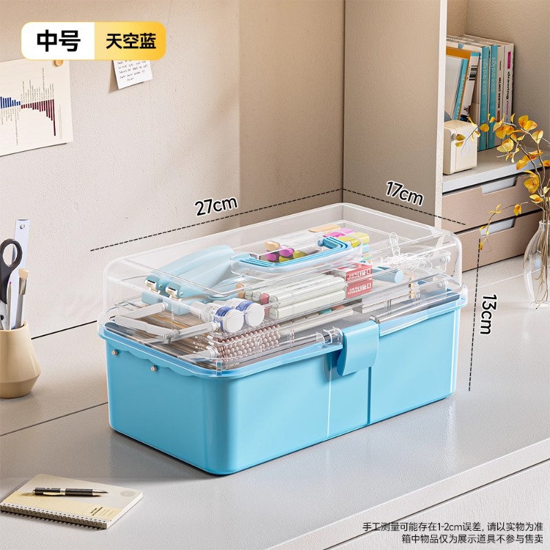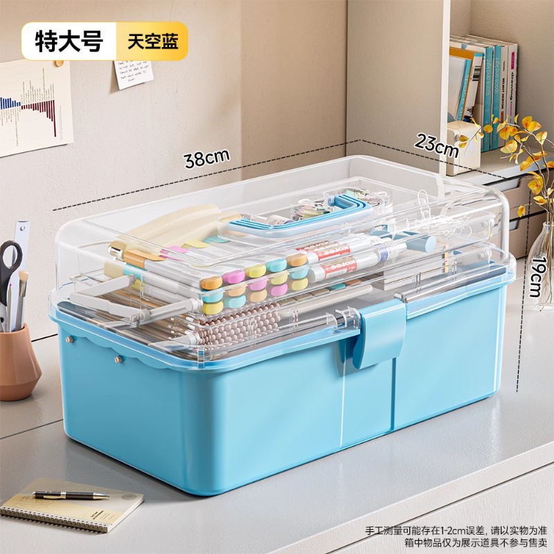 문구 정리 미술 도구 투명 3층 접이식 휴대용 데스크탑 브러시 페인트 서예 보관함 보관함