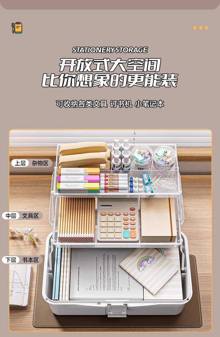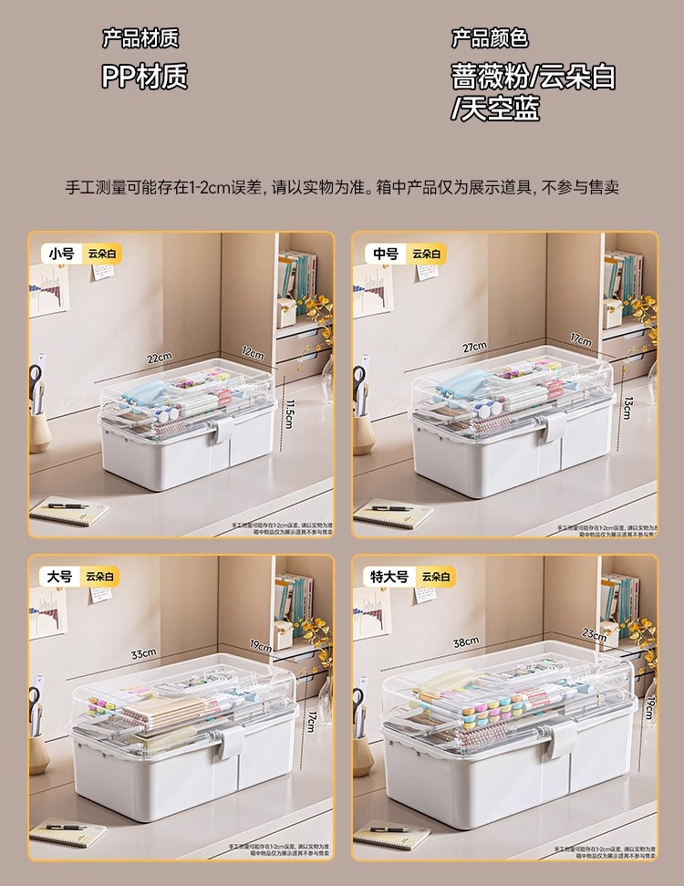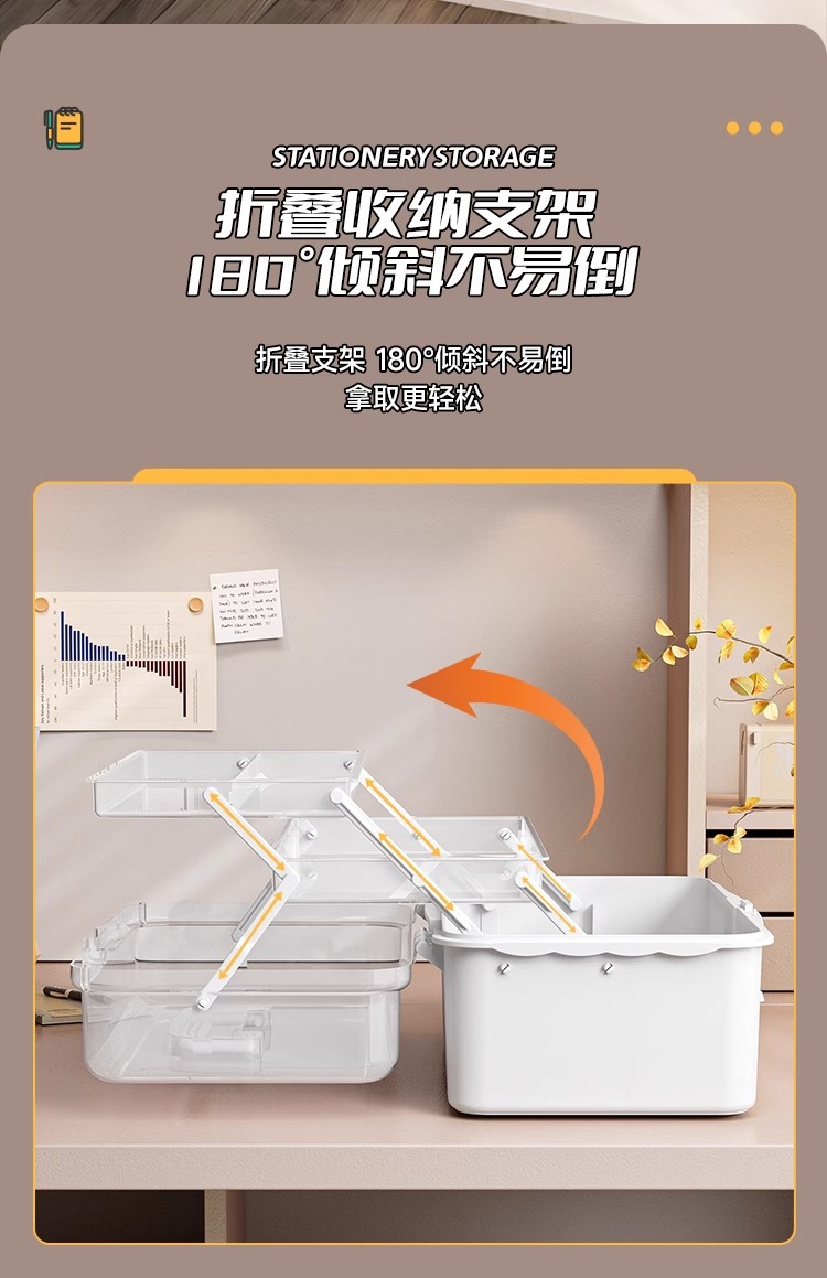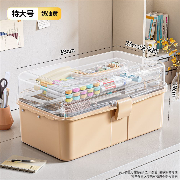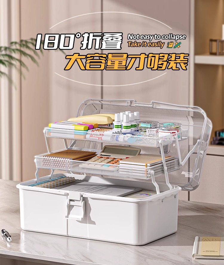 문구 정리 미술 도구 투명 3층 접이식 휴대용 데스크탑 브러시 페인트 서예 보관함 보관함