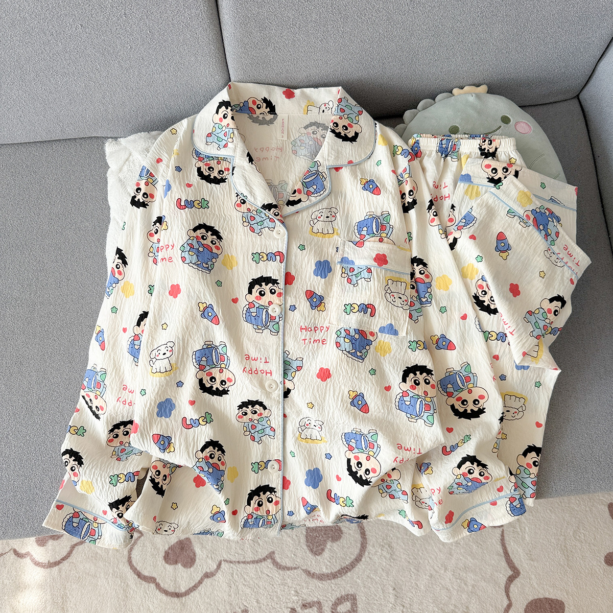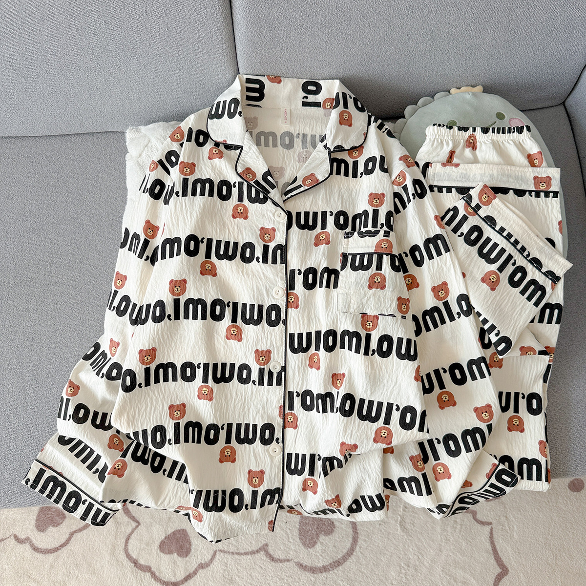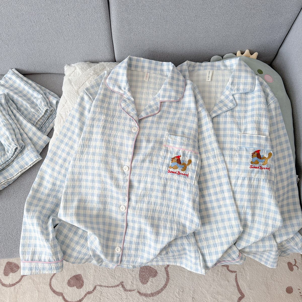 여성과 소년을위한 봄, 가을 커플 잠옷 구름면 가디건 긴팔 바지 만화 가정복 정장 생방송