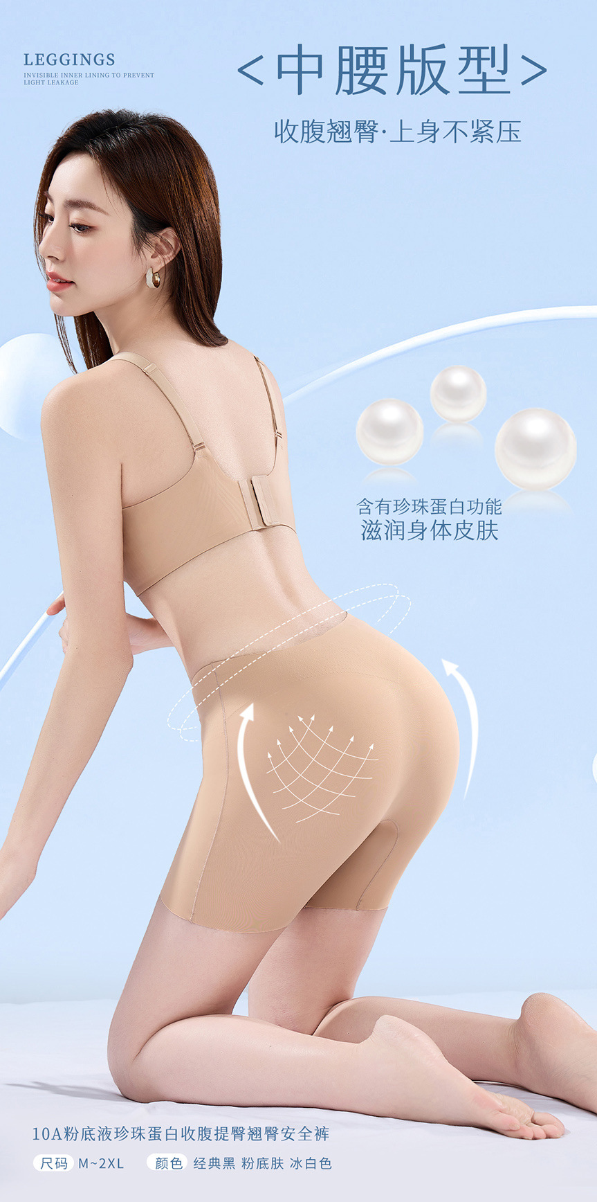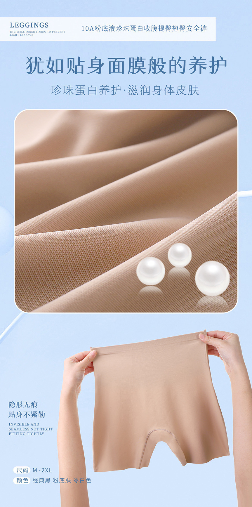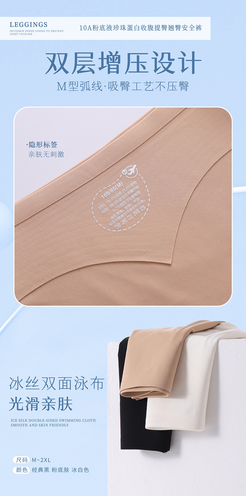 파운데이션처럼 보이지 않는 안전팬티 10A 항균 실크 바닥 팬티 힙업 중간 허리 레깅스 여성용