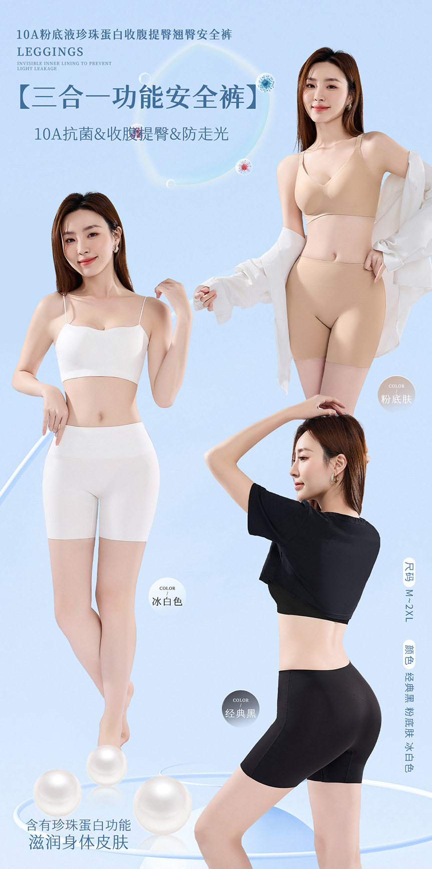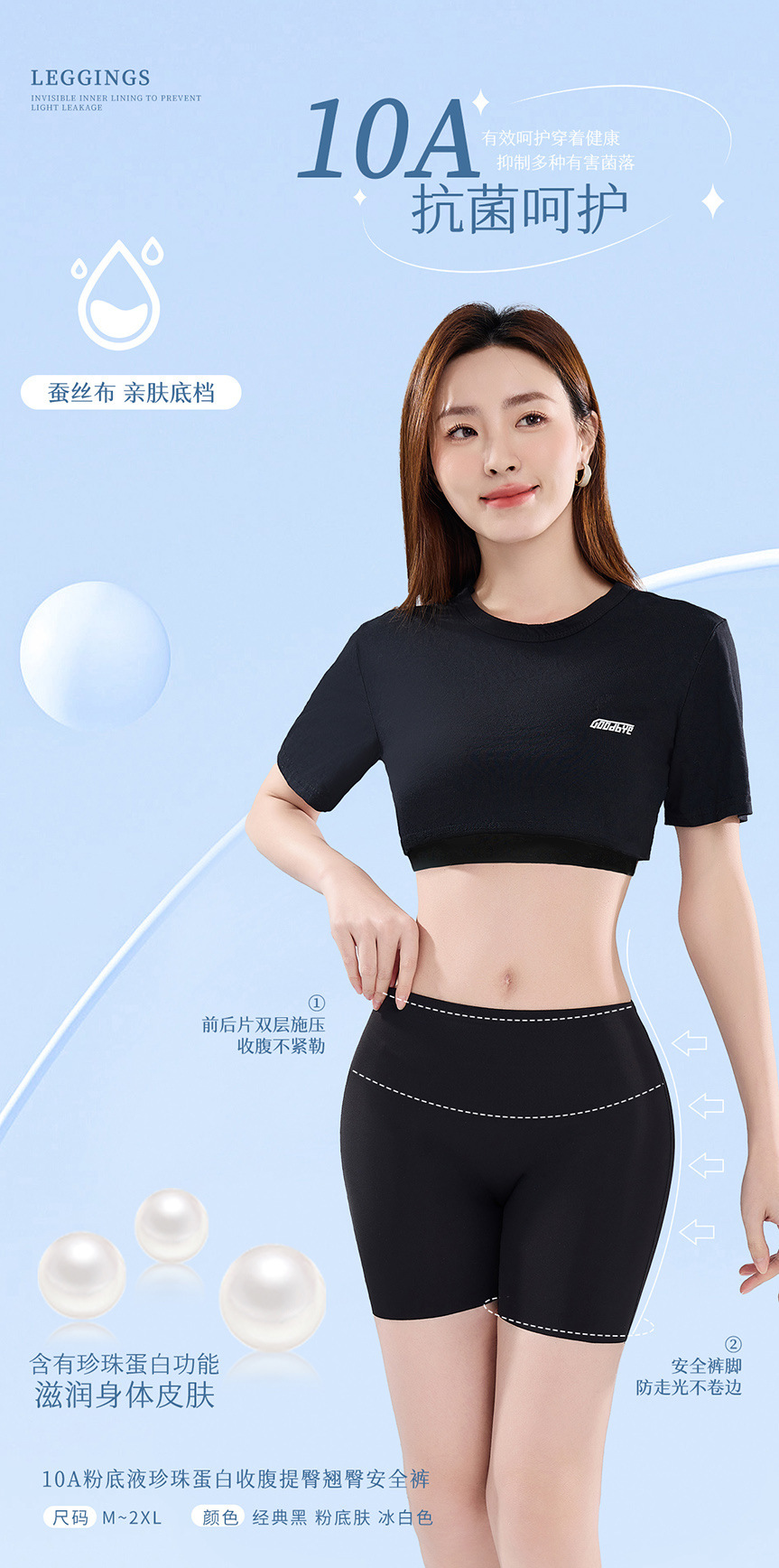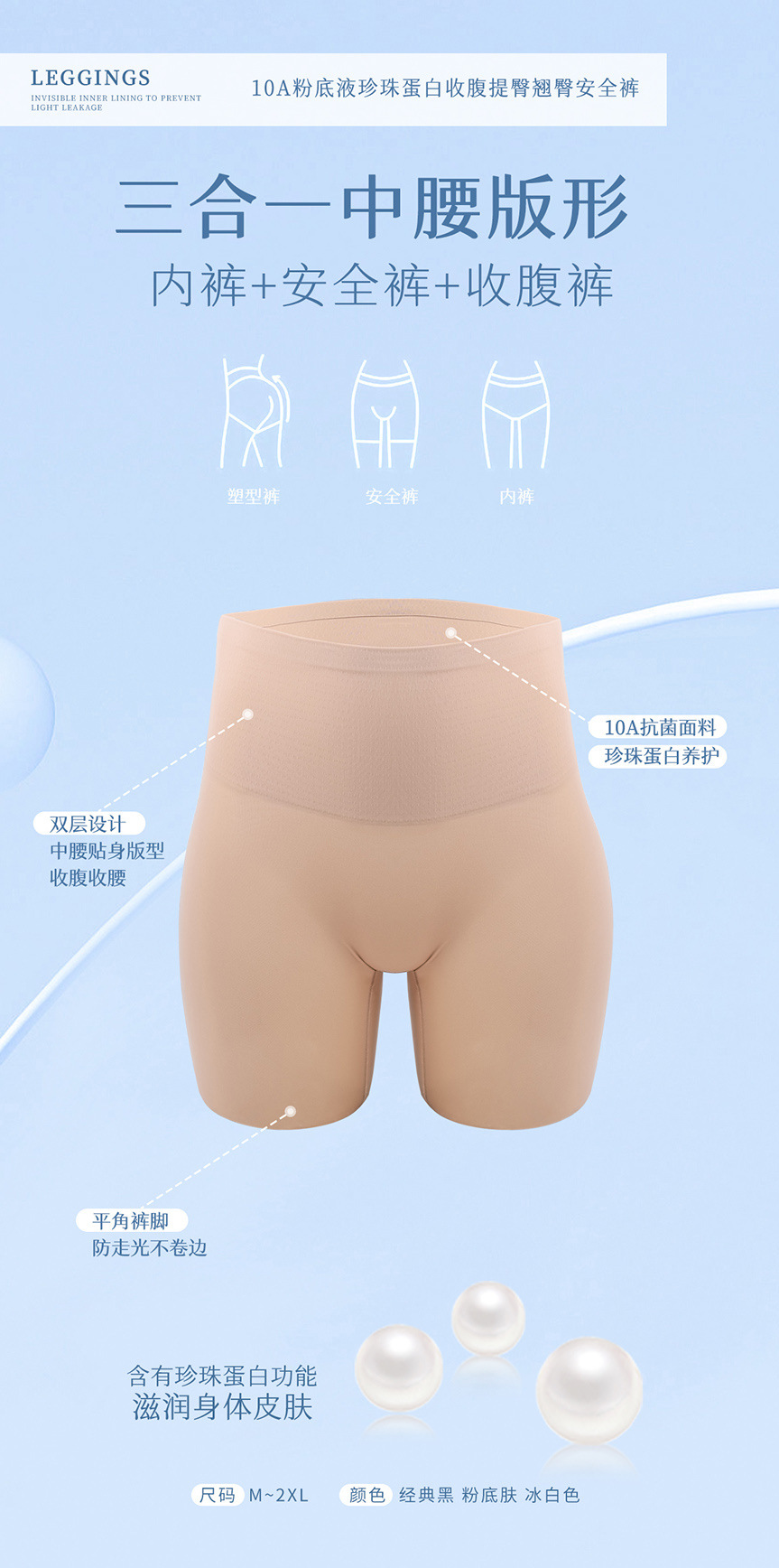 파운데이션처럼 보이지 않는 안전팬티 10A 항균 실크 바닥 팬티 힙업 중간 허리 레깅스 여성용
