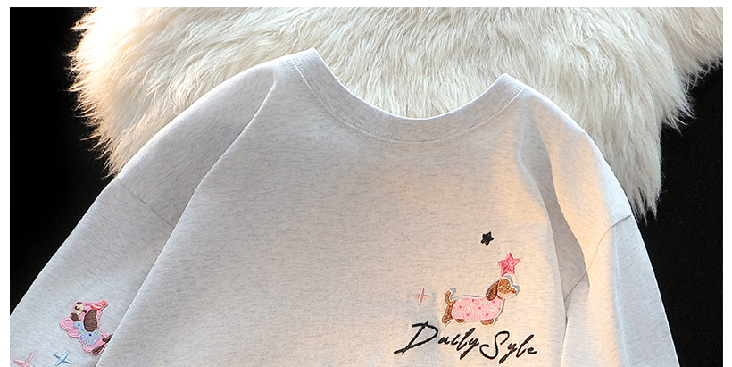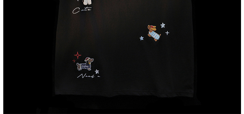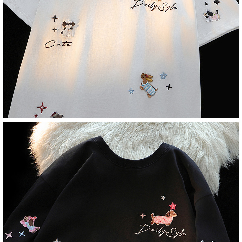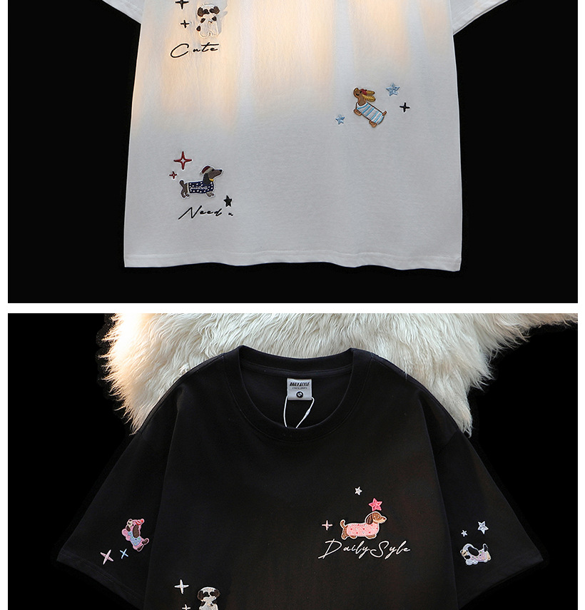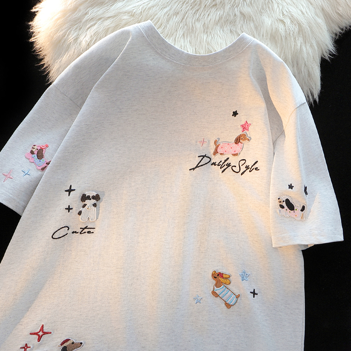 아메리칸 스타일 게으른 세련된 자수 강아지 반팔 티셔츠 여성용 퓨어 코튼 여름 커플 느슨한 반팔 귀여운 탑