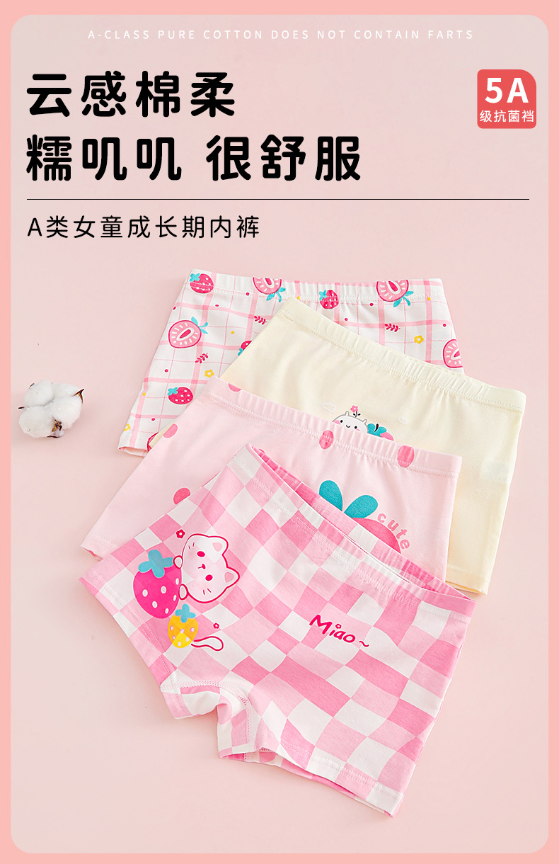 여아용 사각팬티, 순면 A급, 순면, 노출방지, 여학생, 초등학생, 안전바지, 도매, 얇고 통기성 좋고 편안함