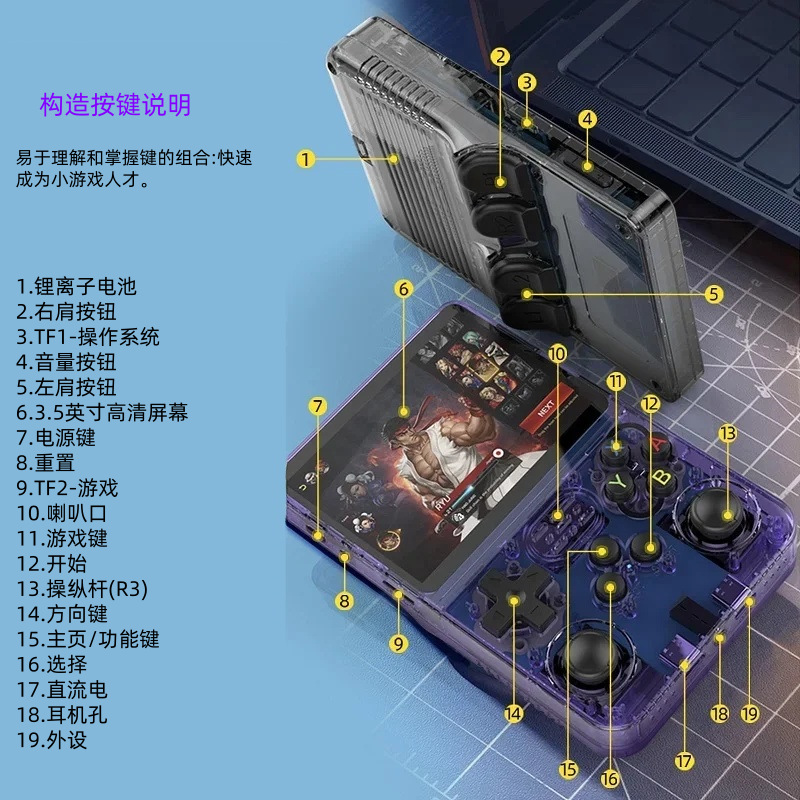 •高分辨率显示器:R36S的3.5英寸IPS屏幕提供640x480的分辨率,可呈现清晰、详细的图形,带来卓越的视觉体验。