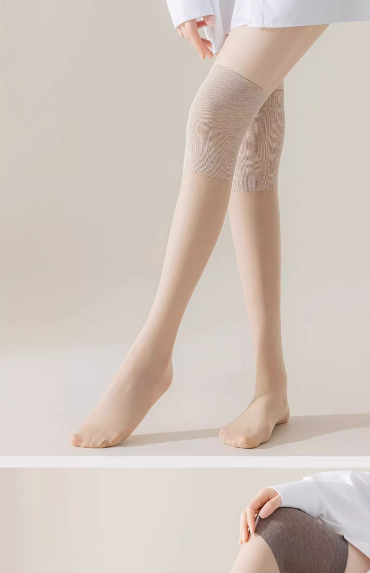 여름 에어컨 무릎 패드 스타킹 여성용 안티 훅 실크 미끄럼 방지 여름 얇은 고기 컬러 아이스 실크 양말 무릎 위 긴 양말스토어 가기