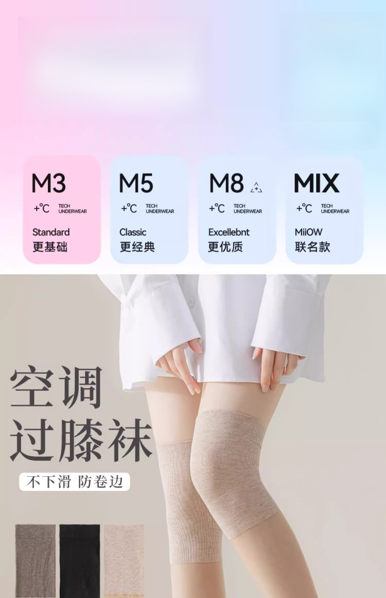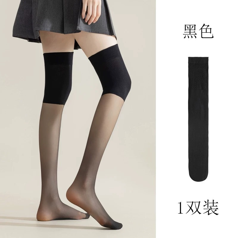 여름 에어컨 무릎 패드 스타킹 여성용 안티 훅 실크 미끄럼 방지 여름 얇은 고기 컬러 아이스 실크 양말 무릎 위 긴 양말