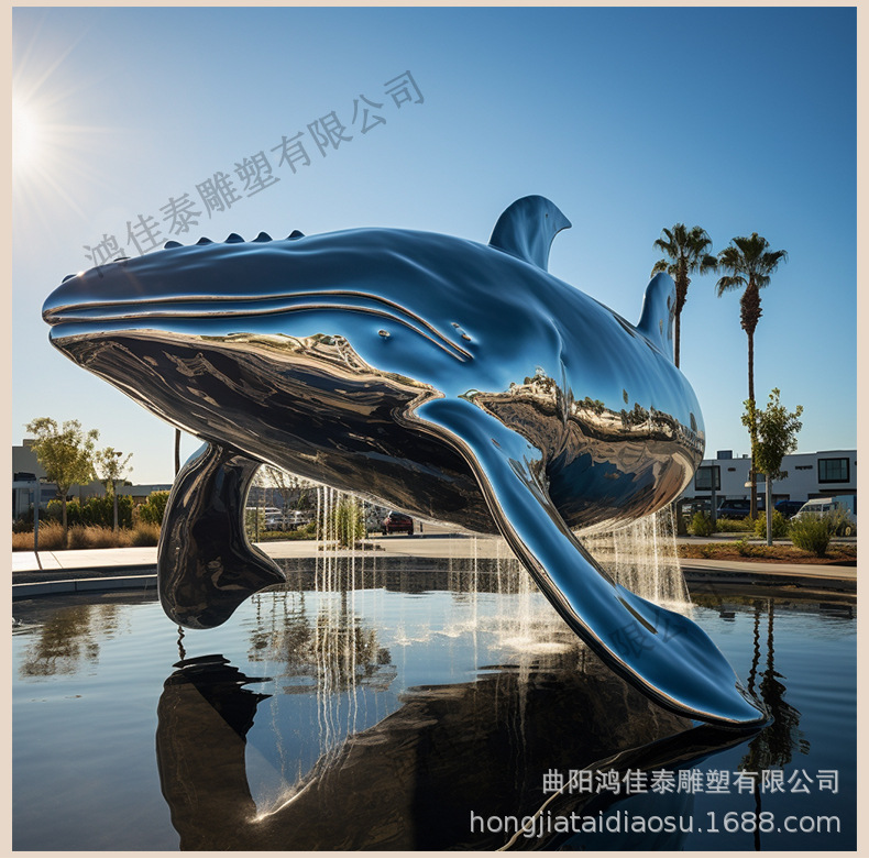 스테인레스 스틸 빛나는 고래 조각 맞춤형 대형 거울 수경 돌고래 정원 호텔 광장 풍경 장식품