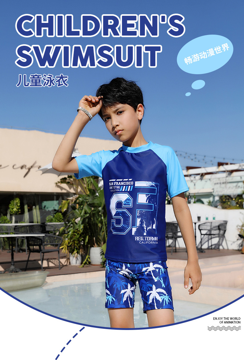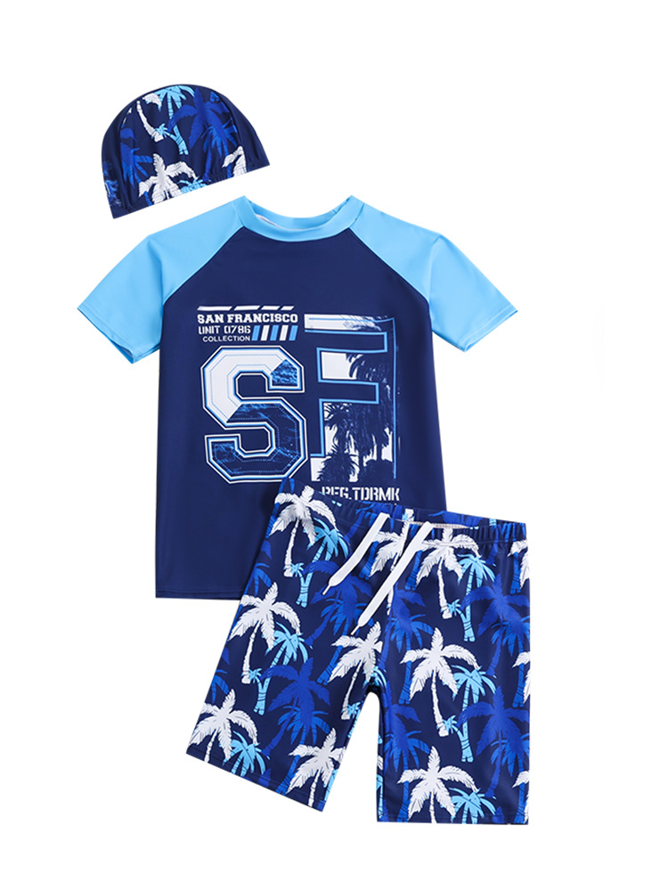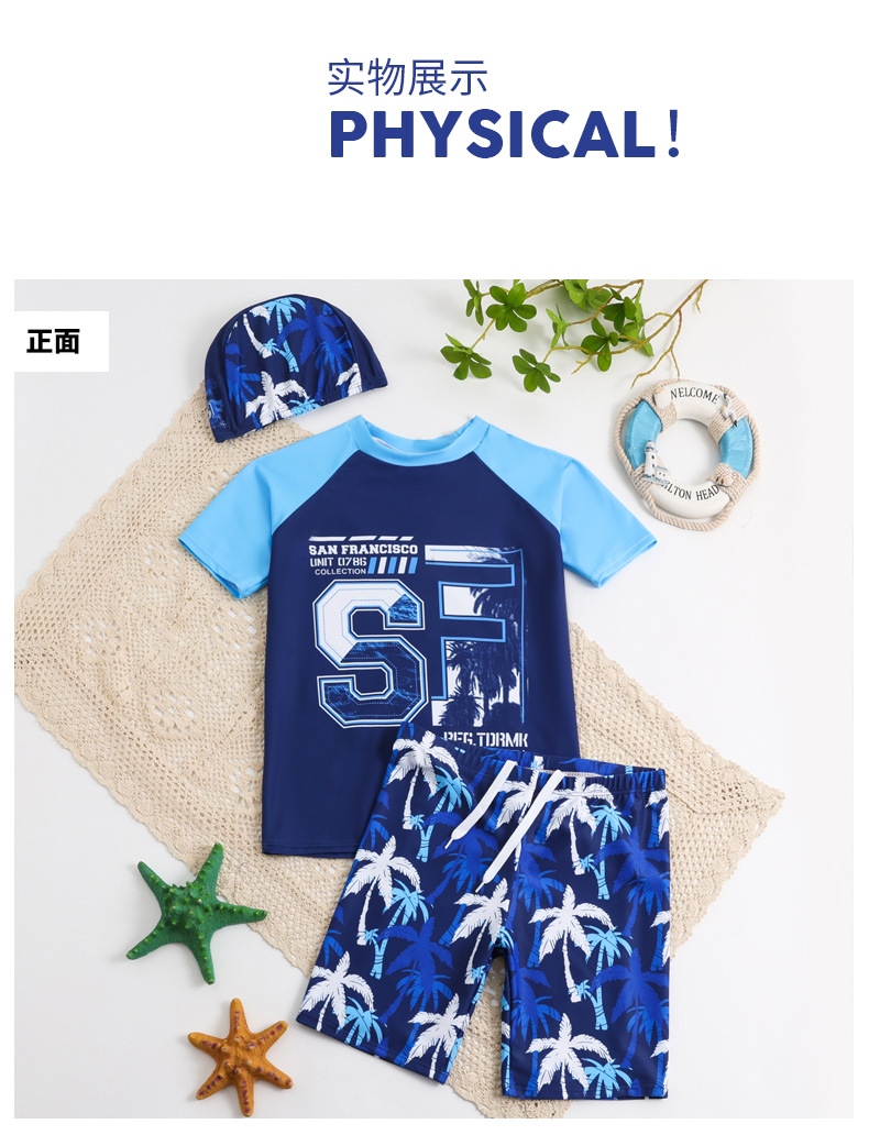 25 학생 남성 수영복 스플릿 캐주얼 스타일 수영 모자 세트 청소년 큰 소년 수영복 1