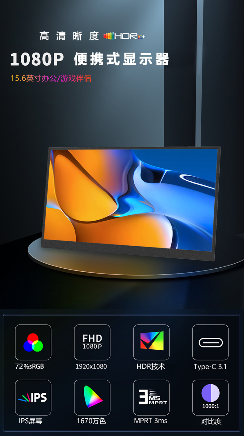 15.6inch 휴대용 모니터, 휴대폰, 노트북, Type-C 원라인 직결 IPS 고화질 보조 화면 LCD
