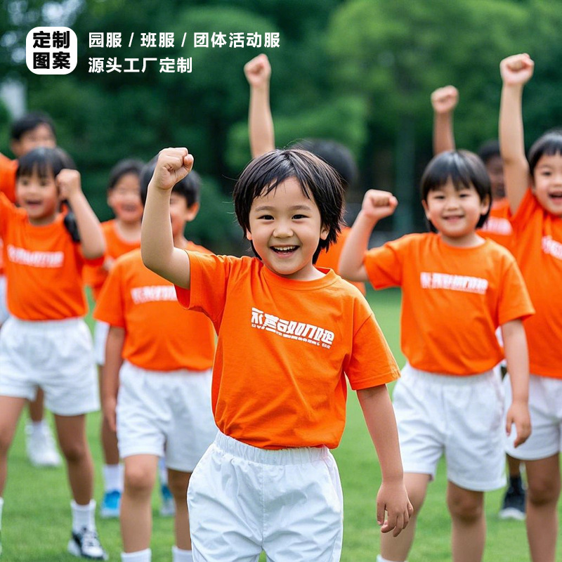 유치원 클래스 유니폼 도파민 순수 코튼 diy 반팔 양복 어린이 학생 팀 빌딩 유니폼 로고 여름 옷스토어 가기