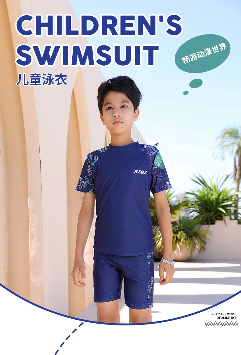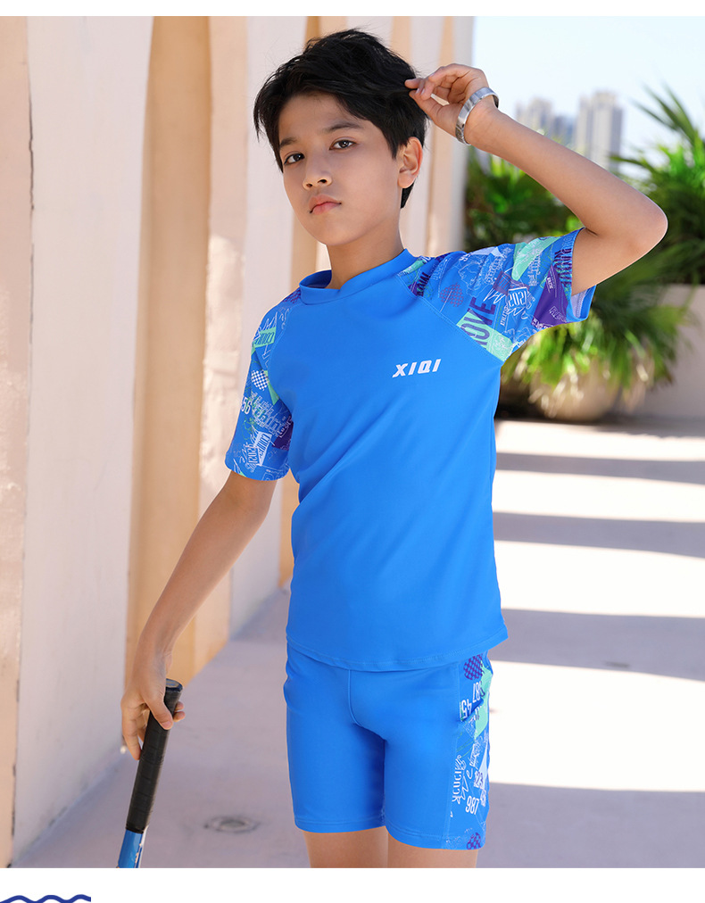 25 새로운 스타일 학생 남성 수영복 수영 모자 세트 청소년 큰 소년 수영복 1
