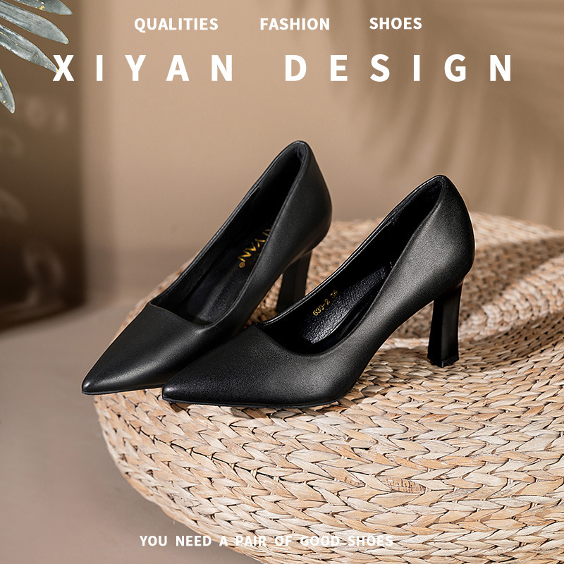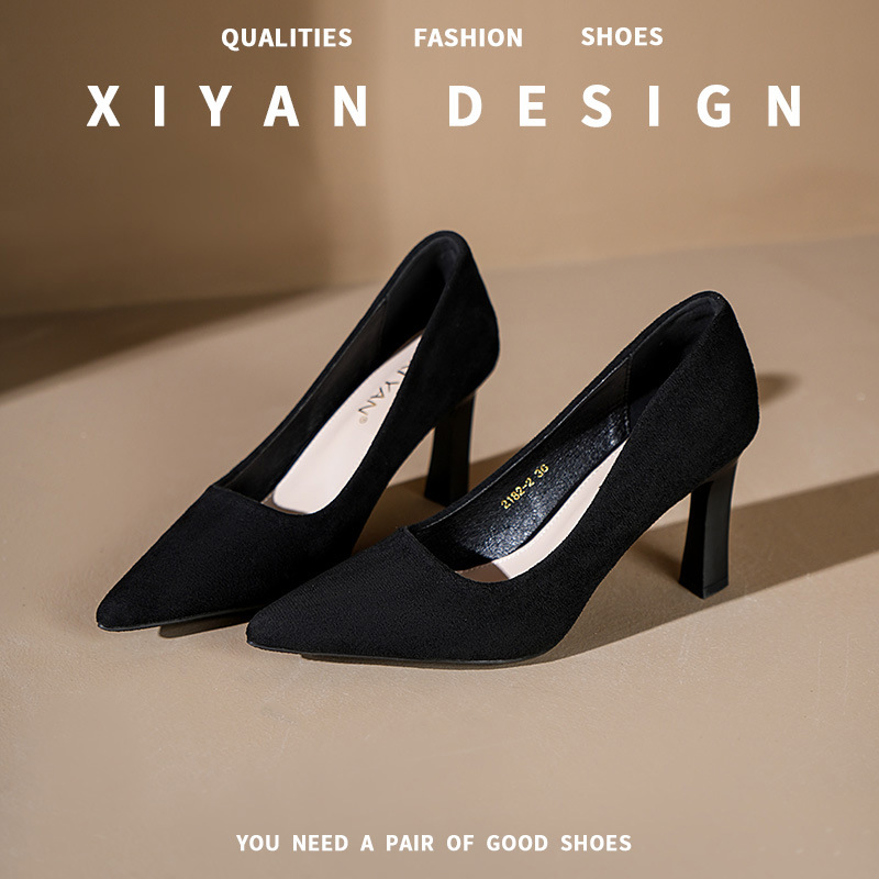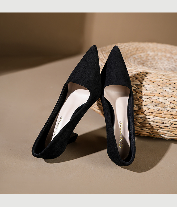 검은 굽 높은 신발 여성 전문 학생 에티켓 원피스 인터뷰 가리키며 중간 두꺼운 힐 비행 직류 기질 여성 싱글 신발스토어 가기