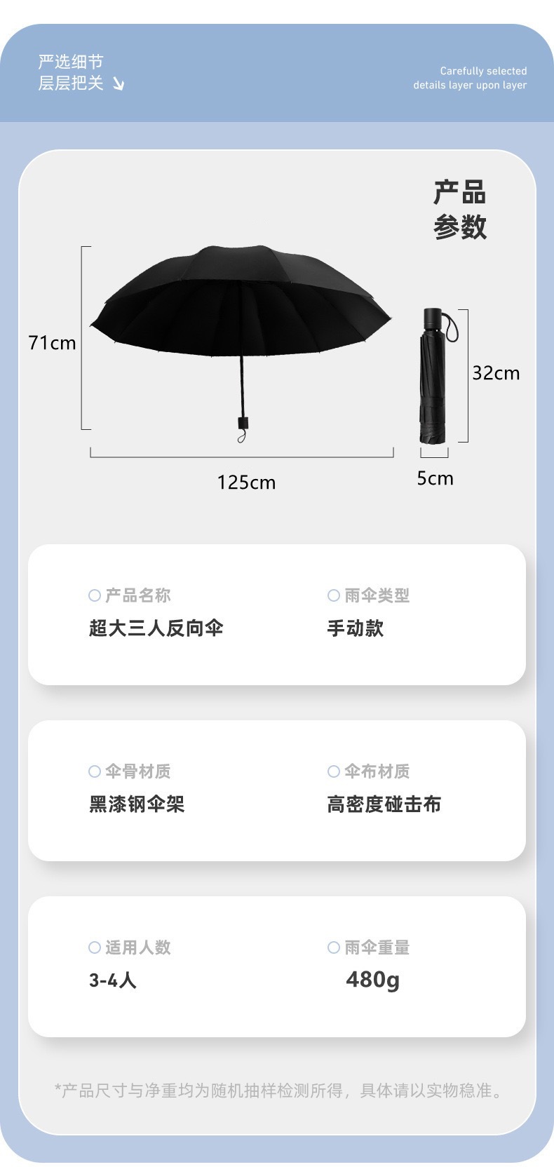 역방향 수동 접이식 비 또는 빛 우산, 이중 강화 바람 방지 광고 선물 판촉 제품 우산 제조 업체 도매스토어 가기