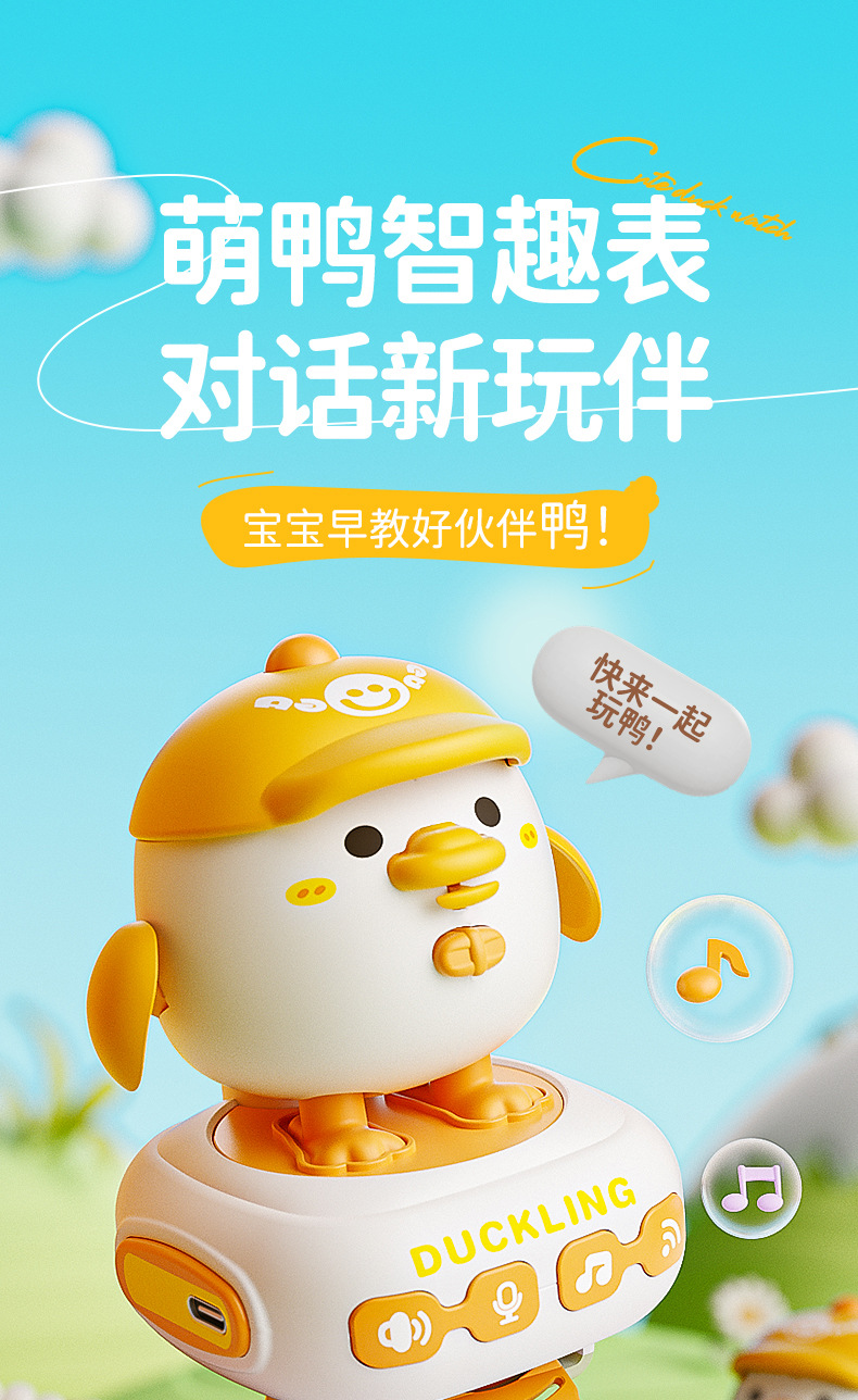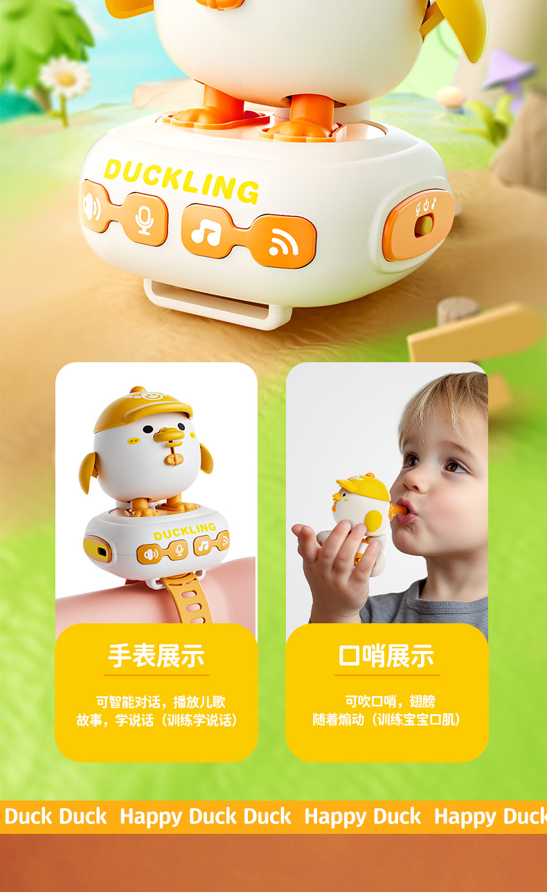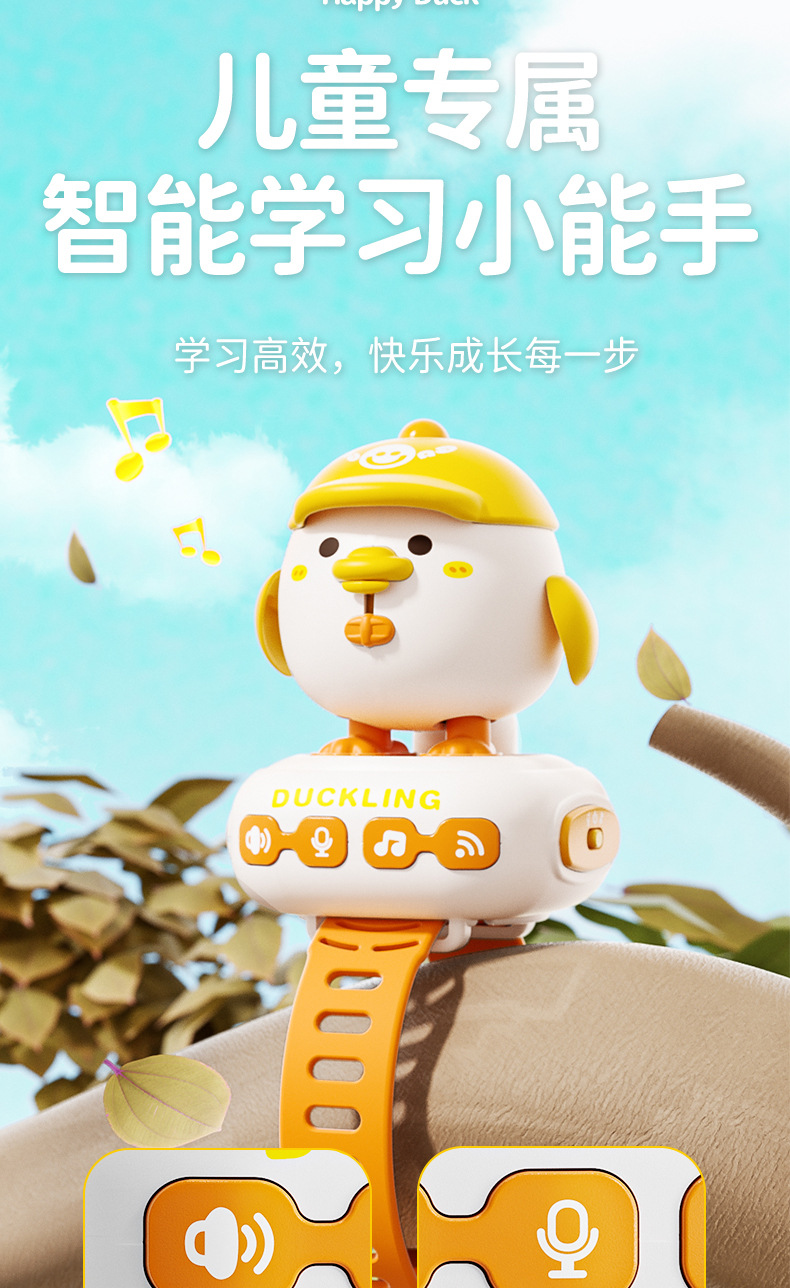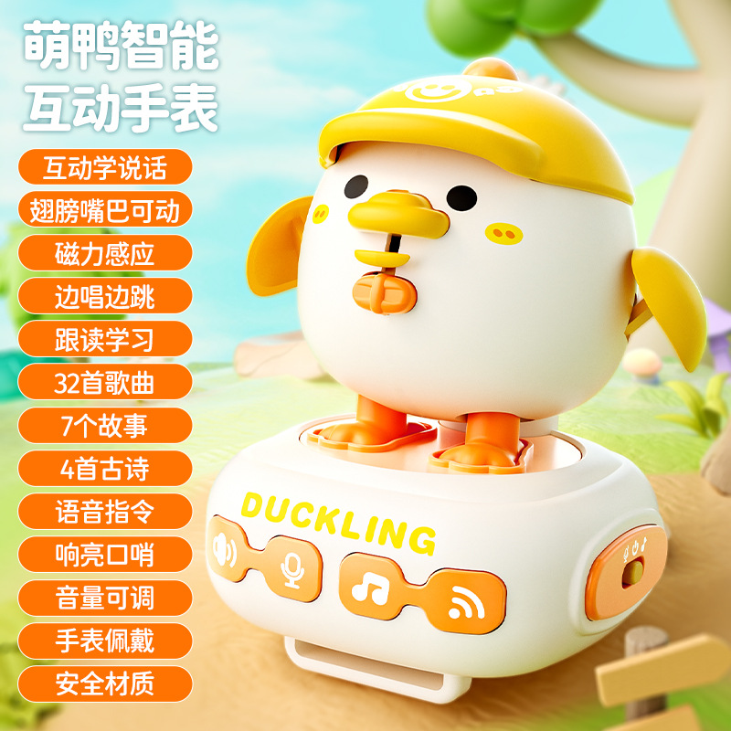 국경 간 작은 노란색 오리 어린이 시계 Gugujiji 교육 장난감 AI 음성 대화 조기 교육 지능형 다기능 이야기스토어 가기